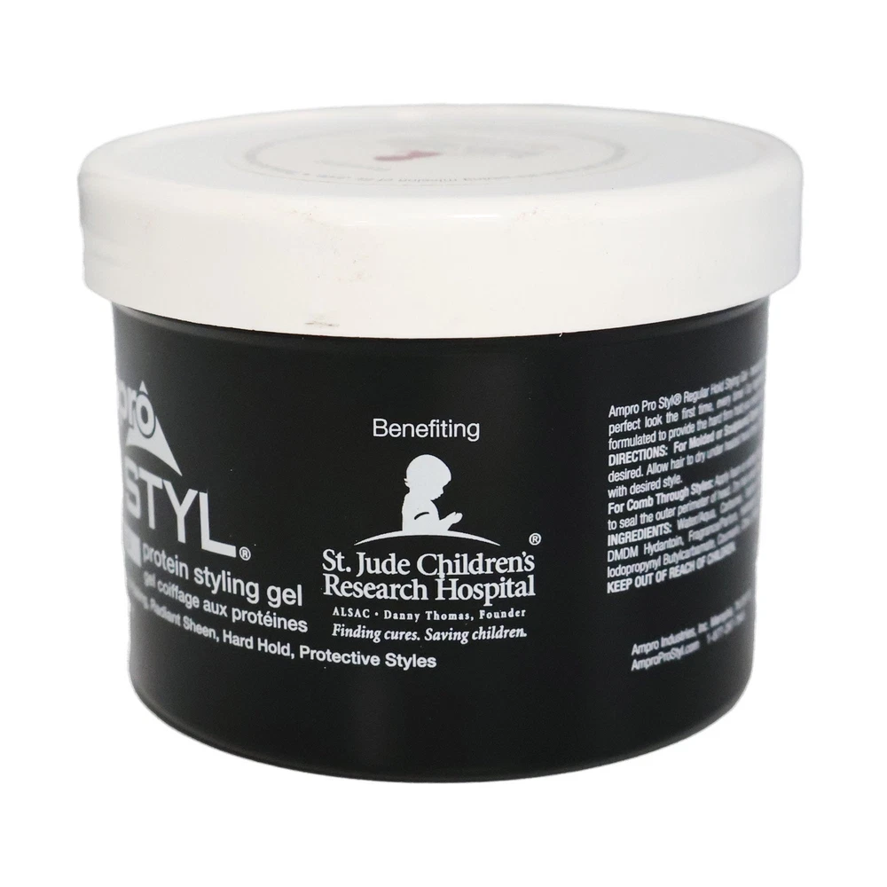 Product Description Ampro Pro Styl Regular Hold Protein Styling Gel, Moisturizing 10oz (6 Pack) Ampro Pro Styl Regular Hold Protein Unisex Styling Gel - because you want a styling gel that gives you the perfect look the first time, every time! Our legendary vegan, alcohol-free styling gel is uniquely formulated to provide the hard, firm hold you need to achieve the styles you desire for all hair types. This gel is designed for sculpting and molding hair styles and for protective hair styles with resistant hair textures. SAY GOODBYE TO FLYAWAYS. With this wonder-working gel, you can define your natural hair and tame lose strands with a firm, non-greasy hold, while also giving your hair a fresher, healthier shine. PROTEIN RICH FORMULA. Strengthen your hair with this protein-enriched gel, to boost your hair's resilience and leave it looking and feeling healthy. It protects your hair during styling and is great for natural hair and textured styles. GOODBYE FLAKES AND GREASE. Enjoy soft, manageable waves and curls by using this non-greasy gel. The moisturizing formula is non-flaking and distributes easily throughout your hair, to help create any hairstyle on any hair texture. A LEGACY PRODUCT LINE. Ampro, which stands for American Products, is a leading beauty manufacturer, established since 1947. We produce top-quality personal care products for hair, body, and skin, free of alcohol, parabens, sulfates, and dyes. MULTICULTURAL HAIR CARE PRODUCTS. Ampro is continuously expanding its hair care line by adding exciting new products, like our Shine 'n Jam Magic Fingers, the Ampro Pro Styl Olive Oil Styling Gel, and our newest kid's line, Ampro's Beautiful Child. Ingredients Water/Aqua, Carbomer, Sodium Hydroxide, Caramel, Propylene Glycol, DMDM Hydantoin, Fragrance/Parfum, Hydrolyzed Soy Protein, Benzoic Acid, Limonene, Iodopropynyl Butylcarbamate, Coumarin, Citral, Linalool, Citronellol