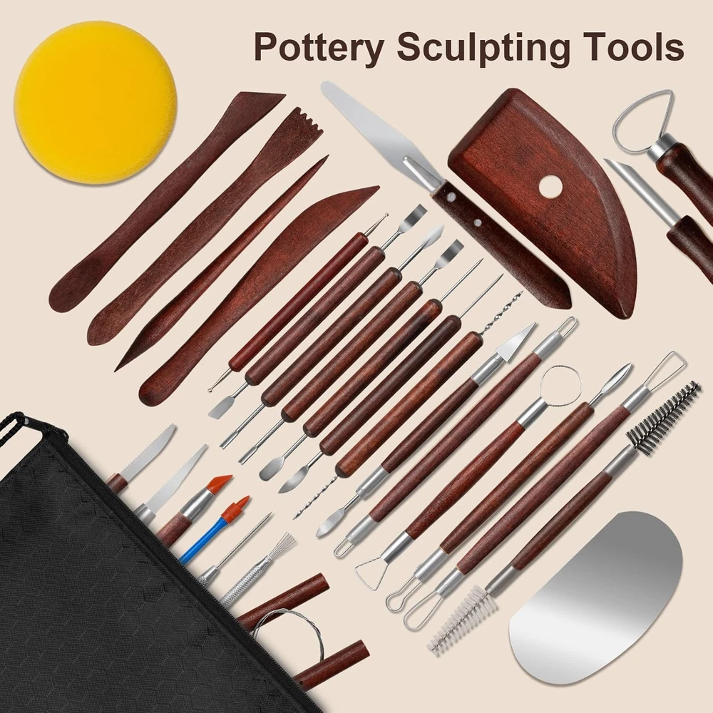 LIGHT PRACTICAL: These clay carving tools are made of good quality wood, stainless steel, plastic and other materials, simple and sturdy, not easy to be damaged or fall off; the handle of the tool pen is smooth and comfortable to hold UNIQUE DESIGN: Each tool in the clay tools sculpting kit has its own unique design, which can be engraving, molded into shapes, textures, poke holes and other details to help your creative realization and accompany the birth of your art MULTI FUNCTIONAL: 31 PCS polymer clay set have a wide range of basic tools for making beautiful pottery and clay activities, meet your needs, you can shape ceramics, clay figures, dot paintings, and even gingerbread men for baking MULTI SCENARIOS: Light weight and useful clay dotting tools kit can be used in school art classes, DIY handmade shops, family pottery activity, Parenting activity, accompanying you to spend a happy creative time 31 PCS CLAY SET: 18 red wood clay tools, 5 red clay sculpting tools, 2 plastic eraser stylus, 2 metals needle tool, 1 red wooden handle ball stylus, 1 red hole punch, 1 pottery sponge, packed in a zipper storage bag, easy to carry and store EXCELLENT TOOLS PRODUCT: The ceramic tools set is suitable for both newcomer, master pottery or clay lovers, it is a good choice to developing inventiveness, imagination and hands-on ability, it is a warm product Product Description Amrules clay tool set is made of durability materials. The set comes with a full range of tools so you can create your own creations as you wish, a good choice for clay enthusiasts, and a great product. The clay tool set is a great helper when it comes to ceramics projects, Whether you're just starting out or a seasoned ceramist, you deserve a good set of tools. There are several different ceramic tool pens in the set, which can press out the desired pattern for you. The irregular nibs can be engraved with different patterns to make the artwork more beautiful. The wooden clay tools can shape the ceramic. The metal ribs make the outside more slippery. The ceramic sponge can soak up the excess water in the clay, and there are also a variety of tools with multiple functions for you to use.