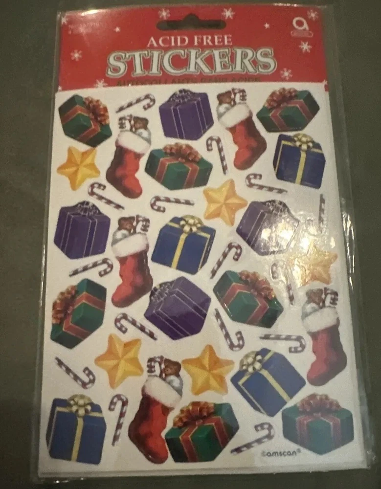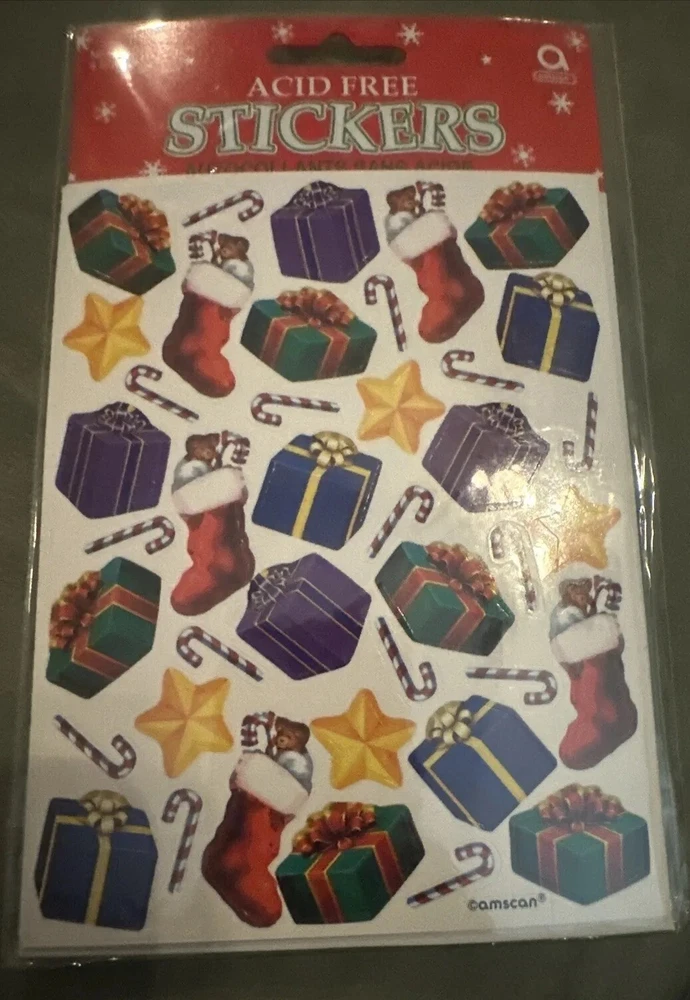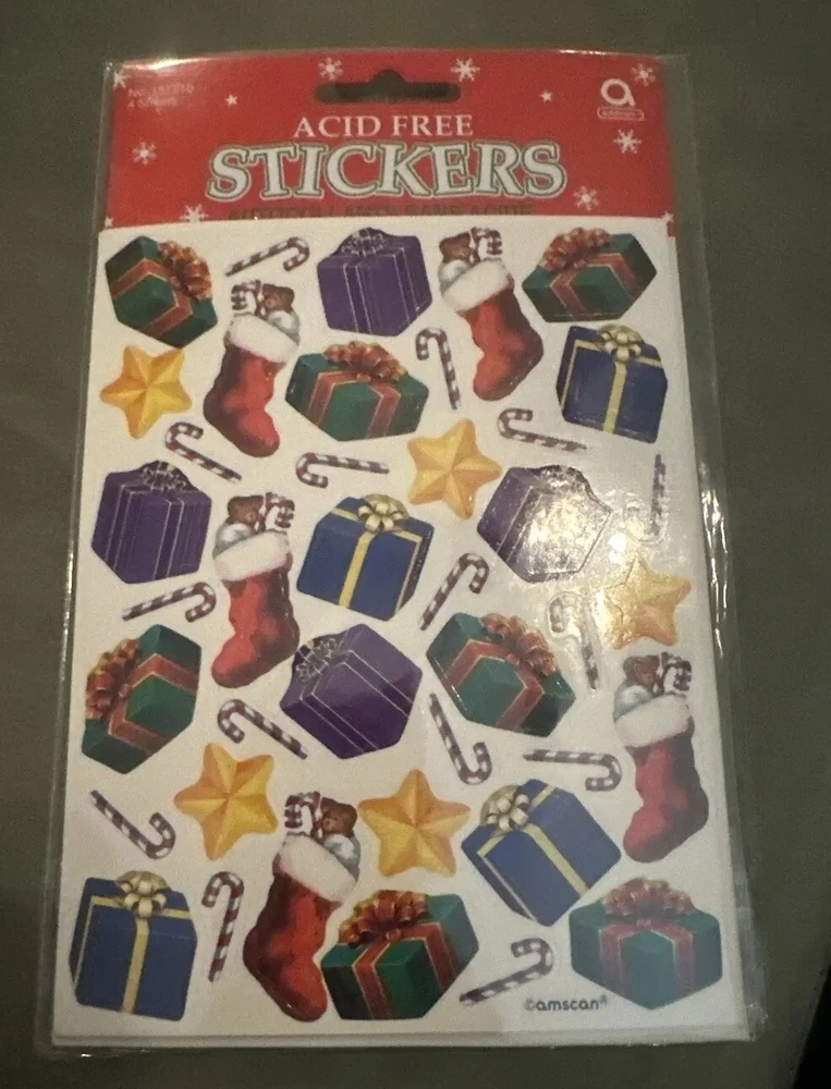 Amscan Stickers Christmas Acid Free 4 Sheets. Gifts, Stars & Stockings. Vintage
