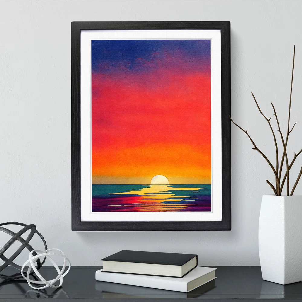 Transform your living space with our captivating framed wall art prints. Crafted in the UK, the stunning An Ocean Sunset Watercolour No.5 framed print is designed to elevate your home decor. We utilise high-quality inks to ensure the colours of the artwork are rich, vibrant, and true to life. The print seamlessly fits within a contemporary frame, creating a stylish wall art picture that is ready to hang in your living room, lounge, bedroom, dining room and home office. Visit Our Shop eBay Message Framed Art Print Enhance your living space and showcase your individual style with our framed prints. Each design is printed upon premium art paper with fade-resistant inks, ensuring the colours remain rich and vibrant for years to come. The print is encased in a ready-to-hang frame, offered in black, oak, or walnut, and safeguarded by shatter-resistant Perspex. An ideal addition to your home, and the perfect gift choice. Like what you see? Visit our eBay store to see more. Premium Quality : The design is printed on quality art paper, enhanced with fade-resistant colours. Ready to Hang : The frame is pre-fitted with hanging hardware, making wall mounting simple, safe and secure. Frame Dimensions : A4 - 25 x 34 cm / A3 - 34 x 46 cm / A2 - 46 x 64 cm. Fast Shipping : Prompt, reliable UK-based dispatch. Customer Satisfaction : Our priority is your satisfaction which is why we offer a hassle-free return policy. Payment You can pay for your order safely and securely via credit or debit card, Apple Pay, Google Pay, and PayPal. Shipping Production times are 1 to 2 working days. Orders are sent via Royal Mail or Evri (depending on size). Returns For your peace of mind, we have a 30-day returns policy in place. Please, contact us for more details. At Big Box Art, we are dedicated to providing high-quality wall art and decorative homeware items. From the outset, we've focused on excellence in our products, service, and reputation, continually enhancing our standards. With an extensive selection of designs, you're certain to discover the perfect piece to suit your taste. ? Copyright 2021, Big Box Art. All rights reserved. Made with by eBayshopdesign.org