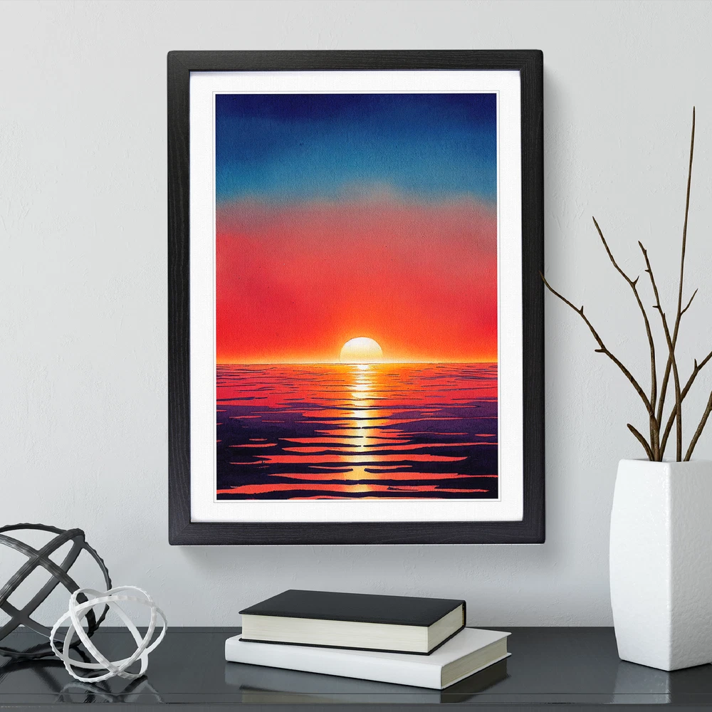 Transform your living space with our captivating framed wall art prints. Crafted in the UK, the stunning An Ocean Sunset Watercolour No.7 framed print is designed to elevate your home decor. We utilise high-quality inks to ensure the colours of the artwork are rich, vibrant, and true to life. The print seamlessly fits within a contemporary frame, creating a stylish wall art picture that is ready to hang in your living room, lounge, bedroom, dining room and home office. Visit Our Shop eBay Message Framed Art Print Enhance your living space and showcase your individual style with our framed prints. Each design is printed upon premium art paper with fade-resistant inks, ensuring the colours remain rich and vibrant for years to come. The print is encased in a ready-to-hang frame, offered in black, oak, or walnut, and safeguarded by shatter-resistant Perspex. An ideal addition to your home, and the perfect gift choice. Like what you see? Visit our eBay store to see more. Premium Quality : The design is printed on quality art paper, enhanced with fade-resistant colours. Ready to Hang : The frame is pre-fitted with hanging hardware, making wall mounting simple, safe and secure. Frame Dimensions : A4 - 25 x 34 cm / A3 - 34 x 46 cm / A2 - 46 x 64 cm. Fast Shipping : Prompt, reliable UK-based dispatch. Customer Satisfaction : Our priority is your satisfaction which is why we offer a hassle-free return policy. Payment You can pay for your order safely and securely via credit or debit card, Apple Pay, Google Pay, and PayPal. Shipping Production times are 1 to 2 working days. Orders are sent via Royal Mail or Evri (depending on size). Returns For your peace of mind, we have a 30-day returns policy in place. Please, contact us for more details. At Big Box Art, we are dedicated to providing high-quality wall art and decorative homeware items. From the outset, we've focused on excellence in our products, service, and reputation, continually enhancing our standards. With an extensive selection of designs, you're certain to discover the perfect piece to suit your taste. ? Copyright 2021, Big Box Art. All rights reserved. Made with by eBayshopdesign.org