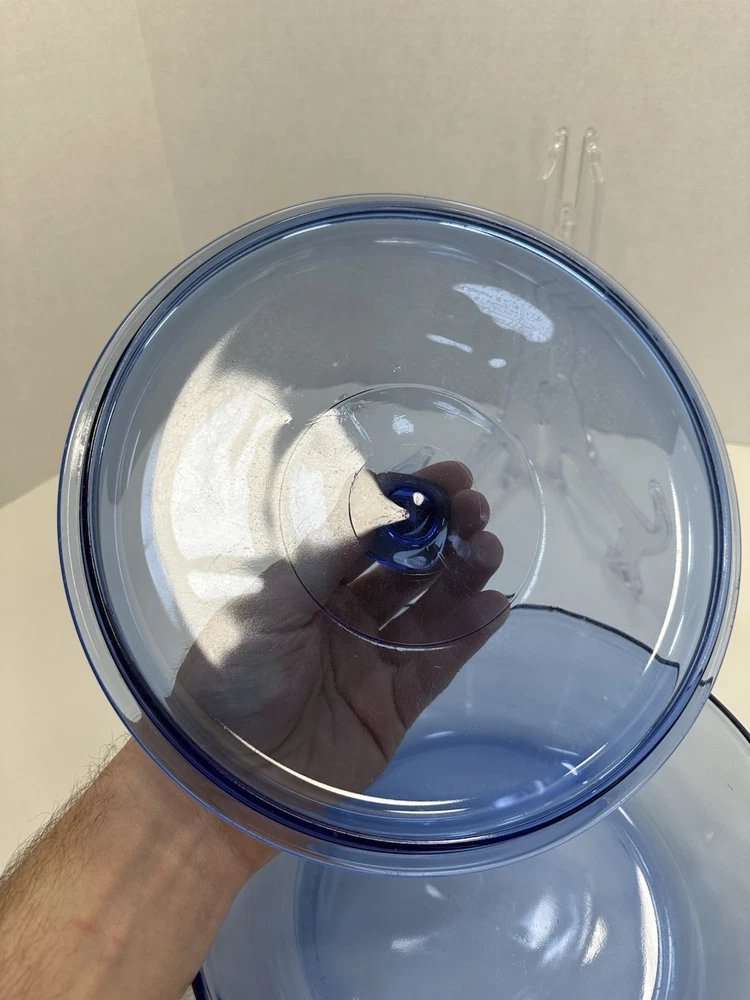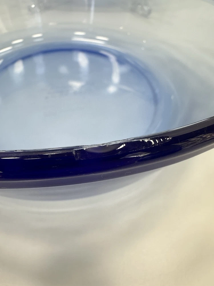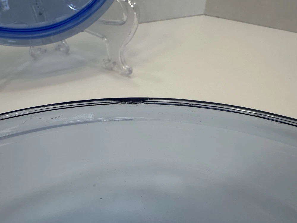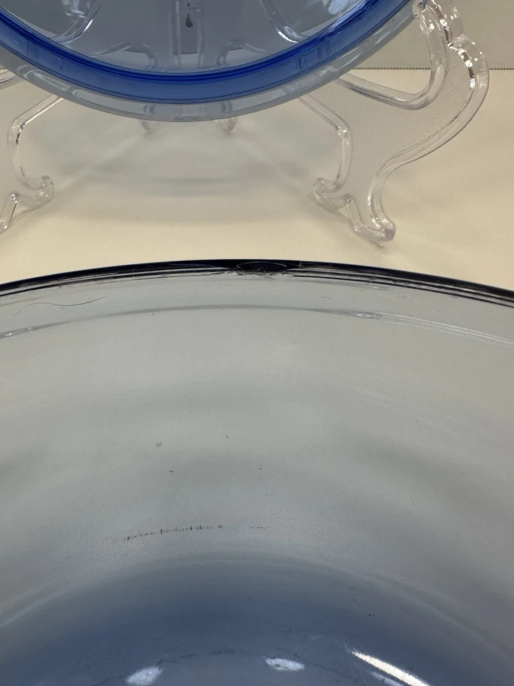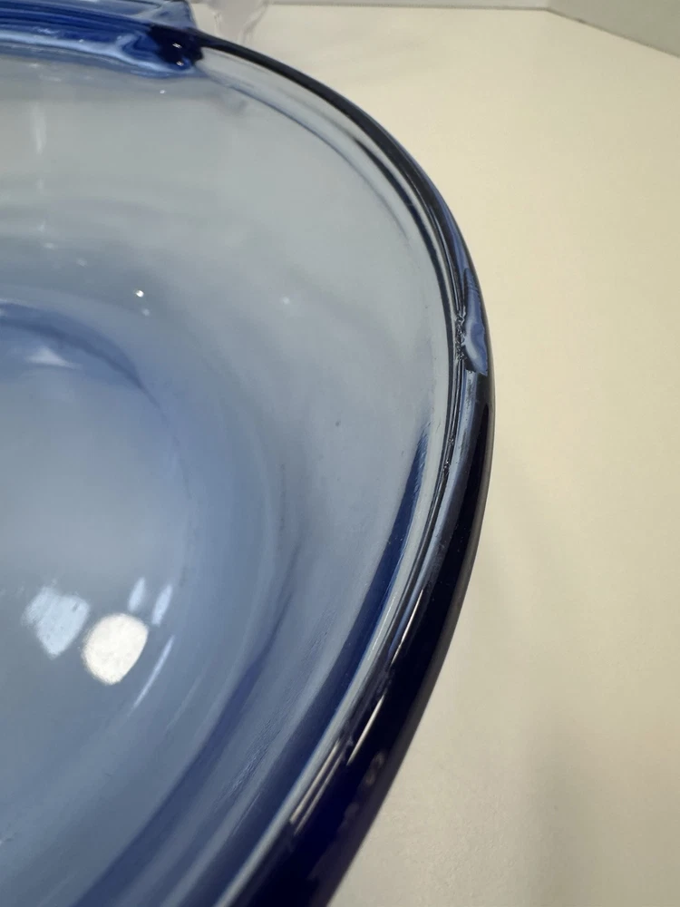 There is a chip or small flat piece that looks like a chip on the rim of the dish. Please see photos. Otherwise it is in good condition. The image shows a vintage Anchor Hocking cobalt blue glass casserole dish with a lid, likely from the mid-20th century. Here are some details: Brand: Anchor Hocking, known for durable and heat-resistant glassware. Material: Cobalt blue glass, oven and microwave-safe. Capacity: 2 quarts. Dimensions: Approximately 9 inches in diameter and 4.75 inches tall with the lid. Care: Dishwasher safe, avoid sudden temperature changes. Usage: Suitable for baking and serving casseroles or other dishes in a preheated oven up to 425°F (200°C). Condition: Vintage items may show minor wear, such as scratches