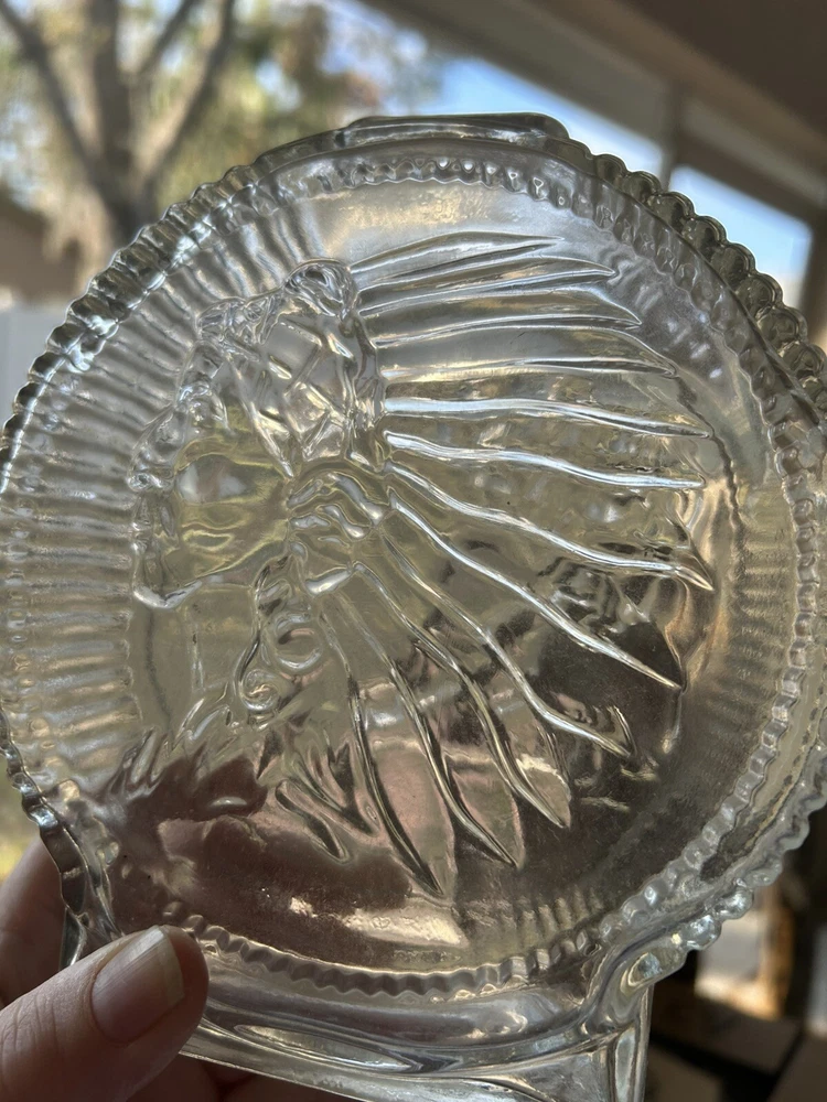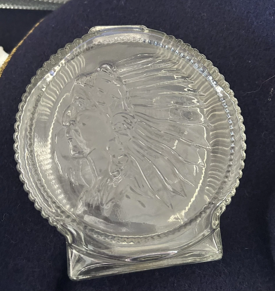 The Anchor Hocking Glass Buffalo Nickel Indian Bank is a collectible still bank made of glass. It features a design inspired by the buffalo nickel and Indian head coin, making it a unique and visually appealing piece for collectors. This bank is a nostalgic and charming item that adds character to any collection of vintage or unique piggy banks. Keep checking back for more collectibles and glassware!
