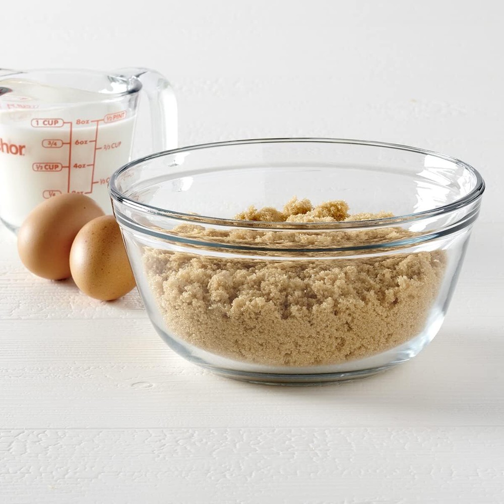 Anchor Hocking Glass Mixing Bowl, 1.5-Quart, Clear Item Description 1.5 Quart Capacity Durable Clear Glass Non-reactive with ingredients Dishwasher Safe Made by Anchor Hocking in the USA › See more product details 1.5 Quart clear, glass mixing bowl from Anchor Hocking. Made of durable, clear glass. Mixing in glass assures no reaction with any ingredients like when using a metal bowl. Made in the USA. Payment Shipping . Return