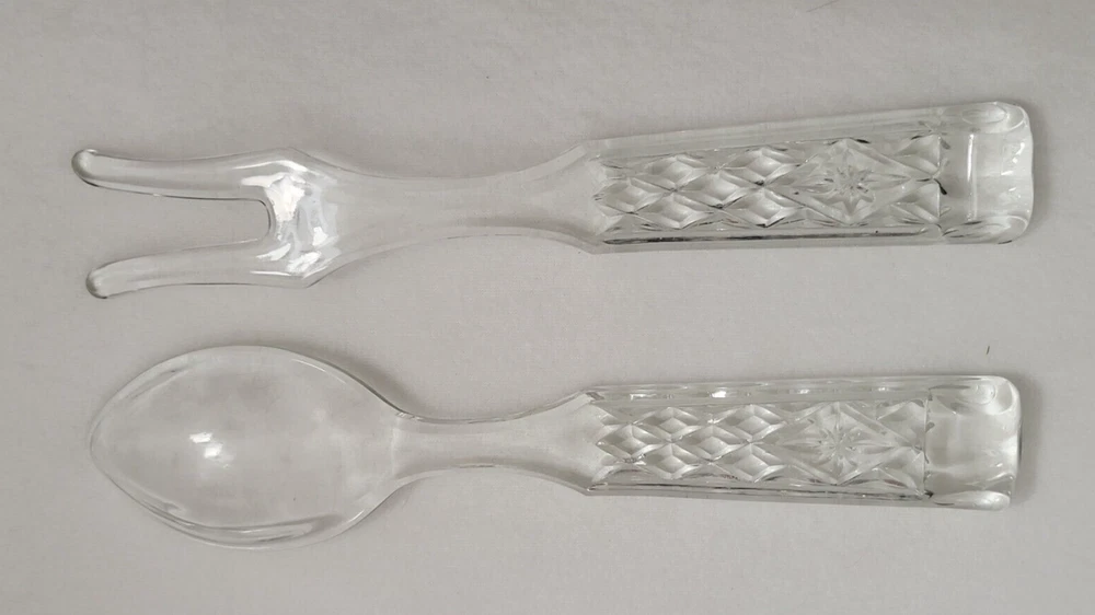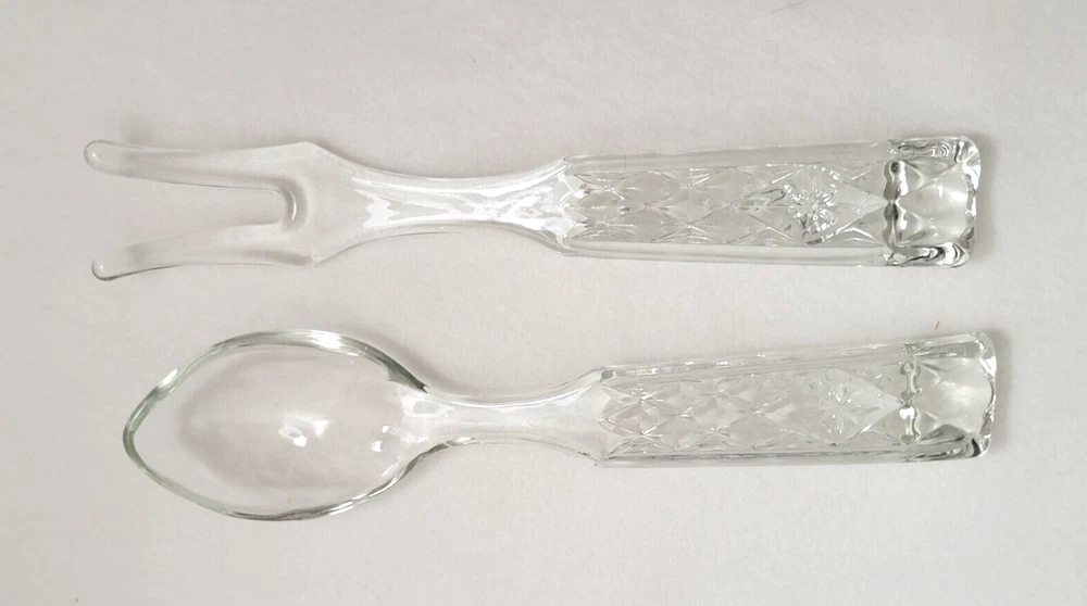 Anchor Hocking Wexford Pattern Glass Fork & Spoon Salad Serving Set MCM Each item is carefully packaged to prevent any damage and is shipped immediately with tracking.