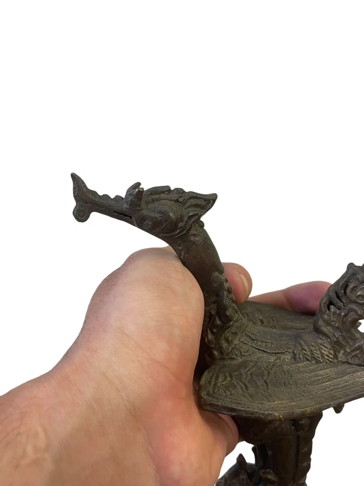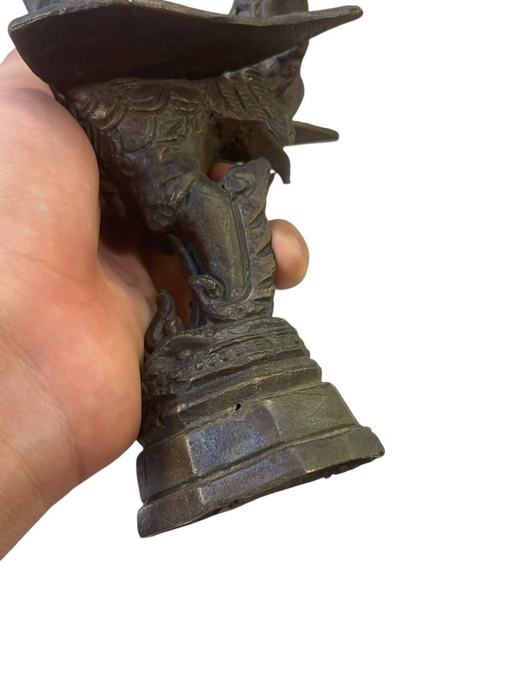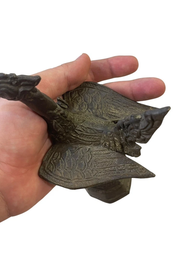 Extremely rare ancient Greek bronze mythical bird statue sculpture. This original piece showcases an antique style and is made of bronze, making it both a unique and valuable collector's item. The detailed craftsmanship and historical significance of this sculpture would make it a prized addition to any antique collection or display.