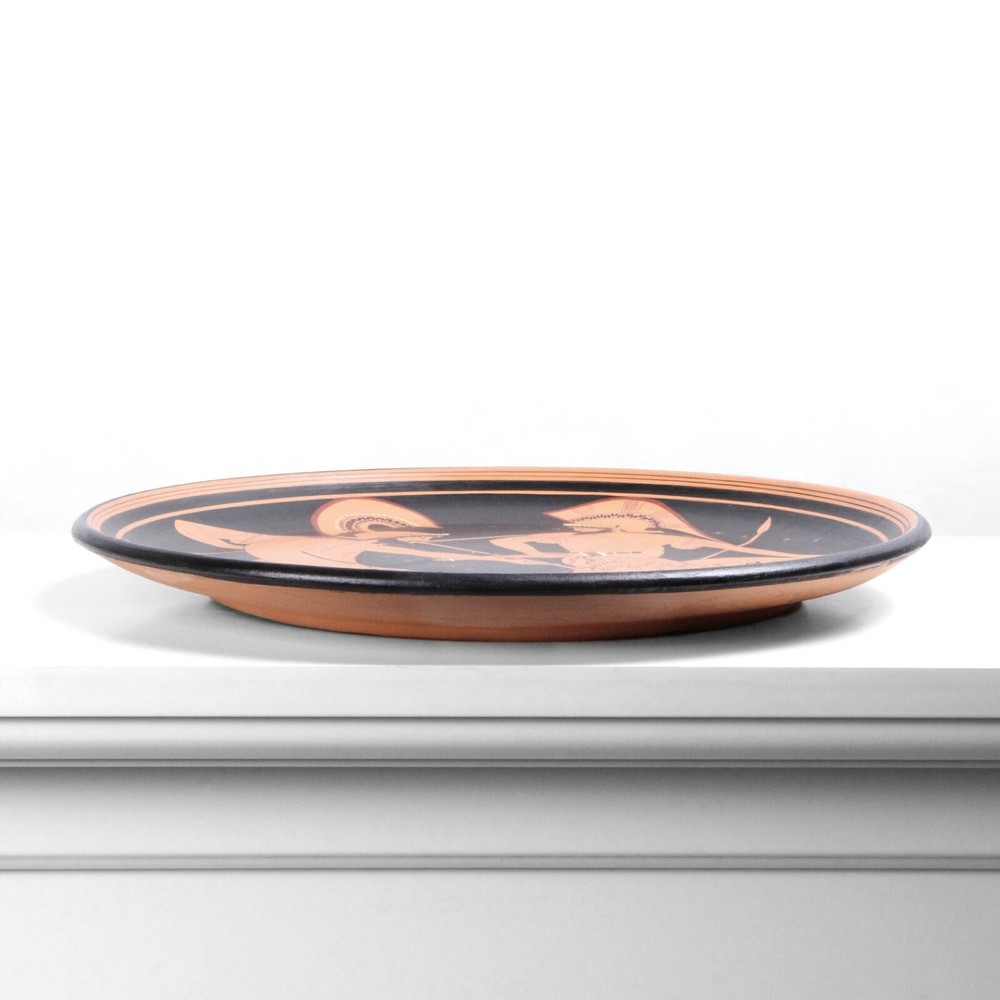About our Ancient Greek Pottery Replica - Red-Figure Plate with Achilles and Patroclus This Ancient Greek Plate with red figures is a high quality hand painted replica of the actual historic vessel from Athens. The vase depicts Achilles and Patroclus wearing armor in the Trojan war. HANDMADE AND HANDPAINTED IN GREECE! - Height: 2 cm (0.8 inch) - Diameter: 32 cm (12.6 inch) Please note that there can be slight differences between the measurements of the item you receive and the data shown on the website due to the handmade nature of the product. - The used materials and methods for fabrication are just like in ancient times. - Can be hanged on the wall. - Decorational object. Not usable for eating/drinking. FREE SHIPPING - 5 working days via Fedex -Handling time: 1 working day. -Worldwide expedited shipping 4-5 working days (free shipping). -All our items are professionally packaged with extra care and shipped by trackable courier service and includes transit insurance to cover the full value of your purchased item(s). THE ANCIENT HOME - About us The Ancient Home is the worldwide leading supplier of reproduction furniture and accent decor inspired by ancient civilizations, neoclassicism, and European antique. Thousands of items available such as impressive sculptures, ancient potteries and one-of-a-kind furniture, 80% exclusive to our brand. Juan Gamero CEO & Co-Founder Zsuzsanna Laszlo Sales Director & Co-Founder Wholesale Trade: The Ancient Home Ltd has the ability to supply any of our items as bulk wholesale trade orders. Should you wish to purchase any items for trade purposes, please contact us to discuss wholesale prices and shipping. Thank you for your business!