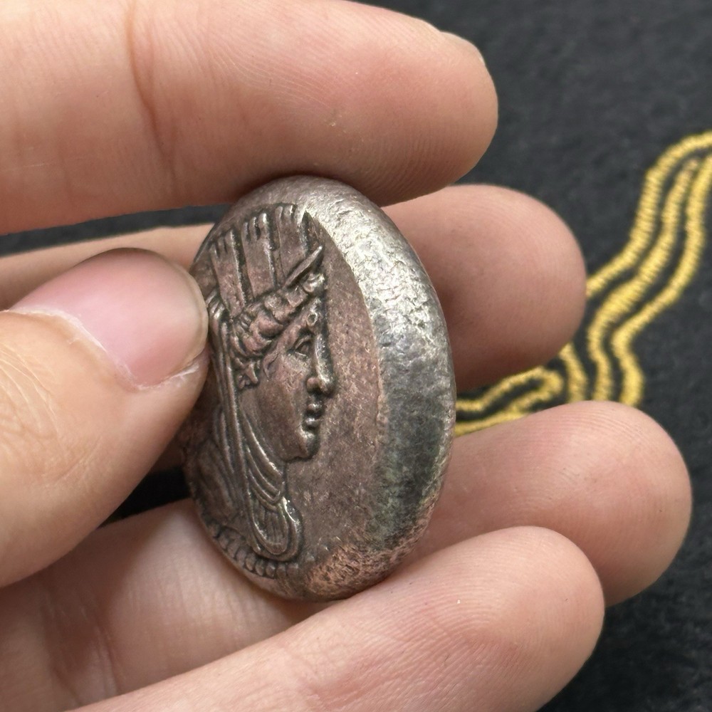 Ancient Greek silver-coated king with crown collectible coin