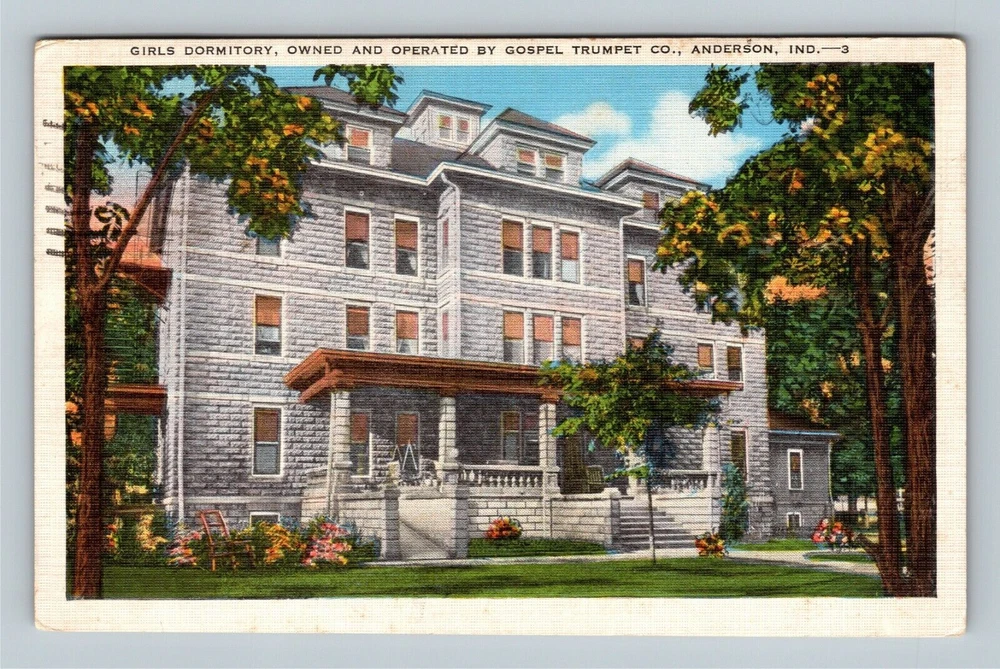 Anderson, Gospel Trumpet Newspaper, Girls Dormitory Linen Indiana c1947 Postcard