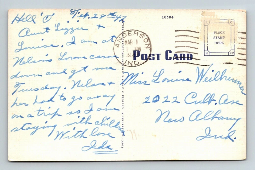 Country/Region of Manufacture: Unknown Country: See Detailed Scan Original/Licensed Reprint: Original Subject: See Detailed Scan City/Region: Anderson Era: See Detailed Scan Type: Printed (Lithograph) Unit of Sale: Single Unit Circulated: Yes Region: See Detailed Scan City: See Detailed Scan State: Indiana Theme: Cities & Towns Postage Condition: Unposted