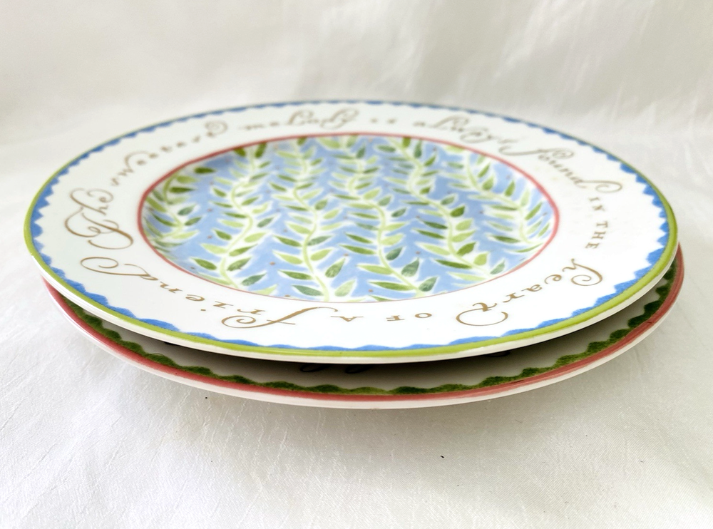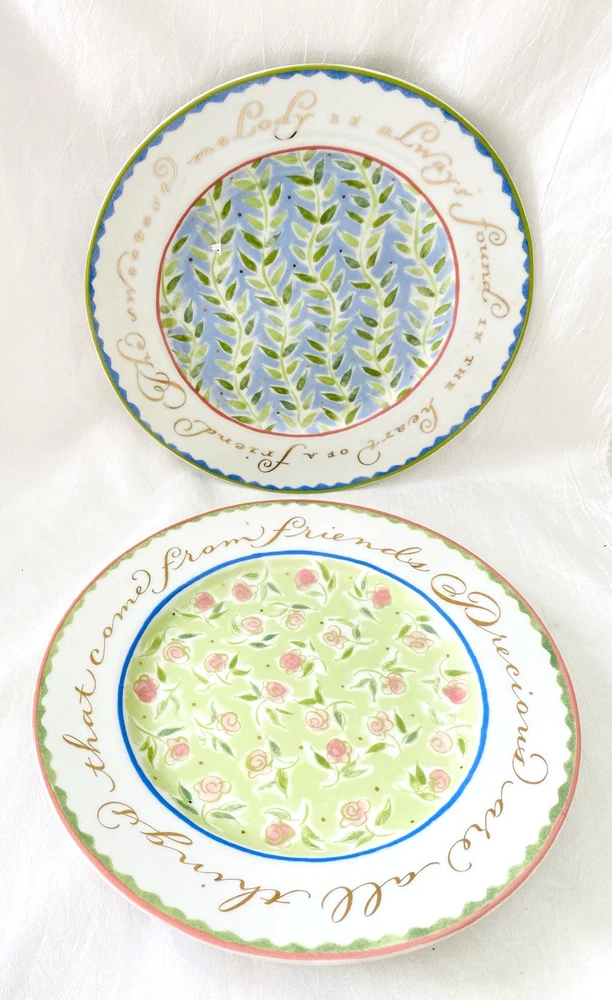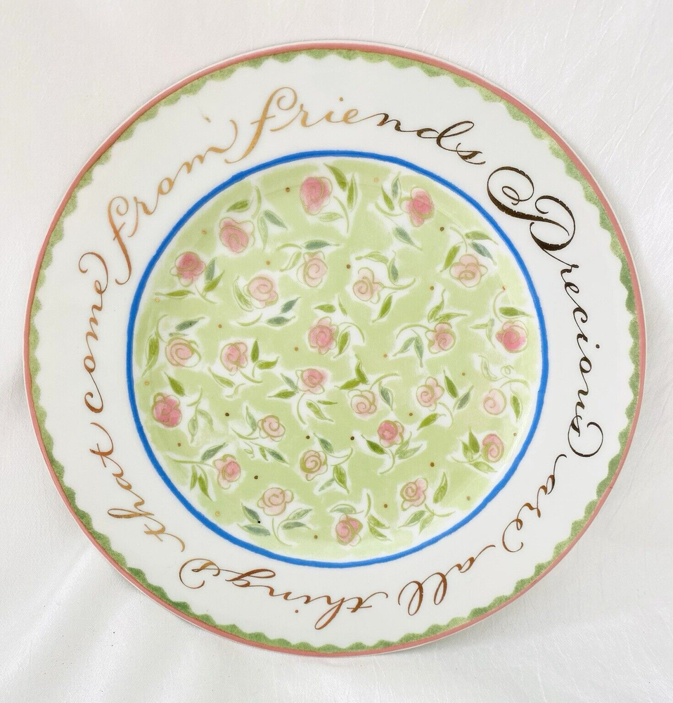 Description: ANDREA by SADEK FLORA BELLA 8 1/4” FRIEND Motto Set og 2 PLATES / Dessert/Salad Plates. Gold lettering. New without box. A lovely set of two floral pattern dessert plates or salad plates from Andrea by Sadek . The plates feature a "Friend" motto with gold lettering and a theme of friendship. They are made of porcelain measuring 8 1/4 inches in length, and were manufactured in Japan. Perfect for all occasions, these multicolor plates would be a charming addition to any dining collection or a great gift for a friend. Shipping: Fast shipping ! I will ship your items to you the same day I receive your payment whenever possible. When payments are made after 2 p.m. Monday thru Friday or on weekends and Holidays I will ship your item the next business day. Packing, time, gas supplies, and fees are included, so if shipping is high, please pass on my items, thank you. I am always willing to combine shipping costs when more than one item is purchased, so check out the other items that I have listed!