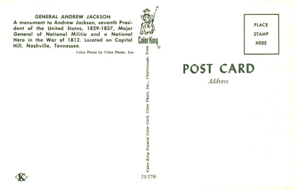 The monument in honor of Andrew Jackson, the seventh President of the United States and a National Hero in the War of 1812, stands on Capitol Hill in Nashville, Tennessee.