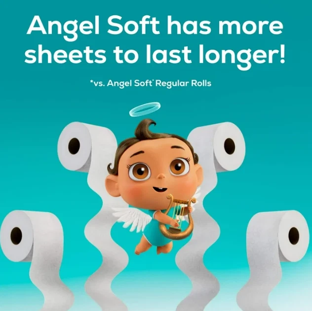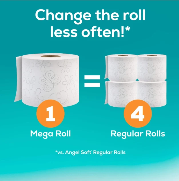 Here’s something to harp on—Angel Soft® Mega Rolls last and last with rolls that are 4 times as big as our Regular Rolls. With 320 2-ply sheets on every Mega Roll, you’ll always have plenty of the softness and strength you love on hand. Plus, each generously sized bathroom tissue roll still fits harmoniously in most standard toilet paper holders. And like all your favorite Angel Soft® products, each of our 36 Mega Rolls are flushable and septic safe in well-maintained sewer and septic systems. Angel Soft® Toilet Paper. Soft and strong. Simple. Every roll of Angel Soft® Toilet Paper delivers a heavenly combination of softness and strength you can count on every time. Each Mega Roll is equal to 4 Angel Soft® Regular Rolls, so you can change the roll less often. Mega Rolls deliver the long-lasting toilet paper rolls you need at a price you’ll love. How divine! Angel Soft® Bath Tissue is septic safe in well-maintained sewer and septic systems and made from SFI® sustainably sourced trees. Each bulk toilet paper pack contains 36 Mega Rolls with 320 2 ply toilet paper sheets per roll.