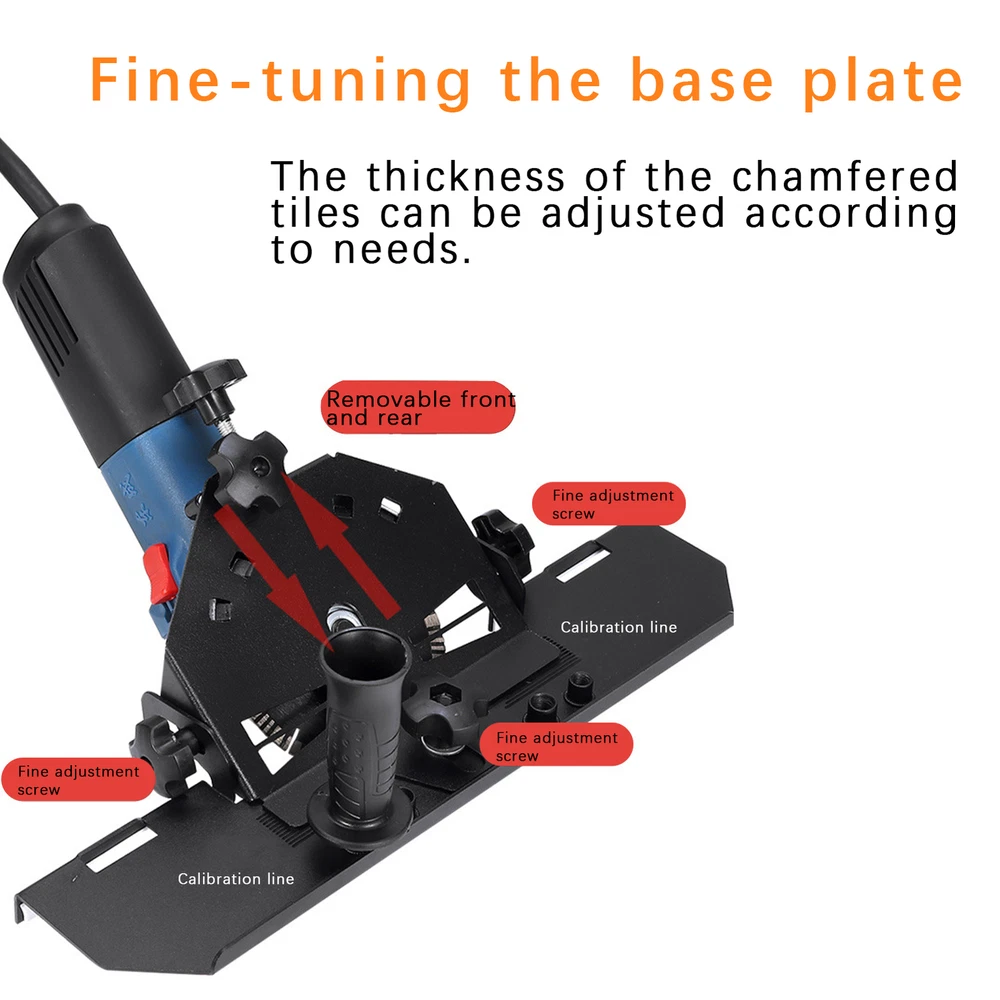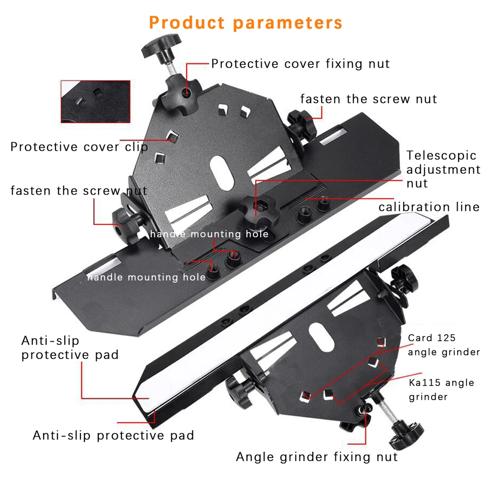 High-Quality Material: With its sturdy metal body, our angle grinder chamfer bracket provides support for challenging grinding tasks. Designed to be wear-resistant and lightweight, it's effortless to carry around and can withstand heavy-duty use. Wide to Application : Achieve a flat surfaces on a variety of materials including glass tiles, microcrystalline stone, and ceramic tiles with our Angle Grinder Chamfer Bracket. Suitable for wide range of uses, cutting surfaces is often flat. Easy to Use: Save time and effort by effortlessly using our Angle Grinder Chamfer Bracket. With adjustable screws for easy installation and a user-friendly design, the bracket ensures efficiency and precision. Anti-Slip Bottom Design: Enhance your tile safety with our Angle Grinder Chamfer Bracket, equipped with an anti-slip bottom design for ideal protection against damage and scratches. Efficient Performance: Get your job done effortlessly with 45° chamfering and adjustable tile thickness that ensures a seamless cut surfaces without any burrs, ideally boosting your productivity. Our tool has a flat cutting surface to protect tiles from damage while achieving a perfect 45° chamfer. Suitable for glass tiles, microcrystalline stone, ceramic tiles, glazed tiles. Specification: Product size: 170x88x390mm/6.69 x 3.46 x 15.35inch Suitable for: 115/125 type angle grinder Adjustment angle: 45° Weight: 1071g Packing List: Angle Grinder Chamfer Bracket*1pcs Note: Due to different lighting and screen settings, the item color may be slightly different from the picture. Due to different manual measurements, please allow a 1-2cm difference in size.