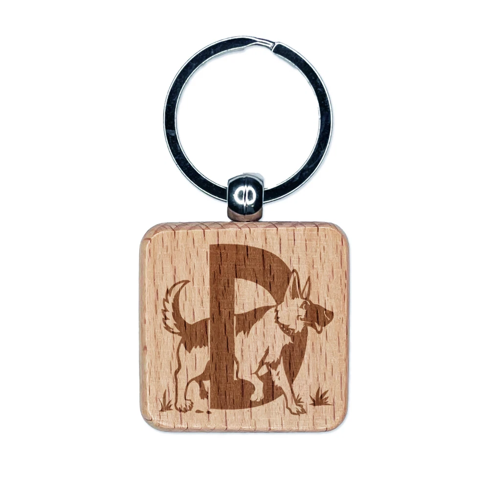 Animal Alphabet Letter D for Dog Engraved Wood Square Keychain Tag Charm