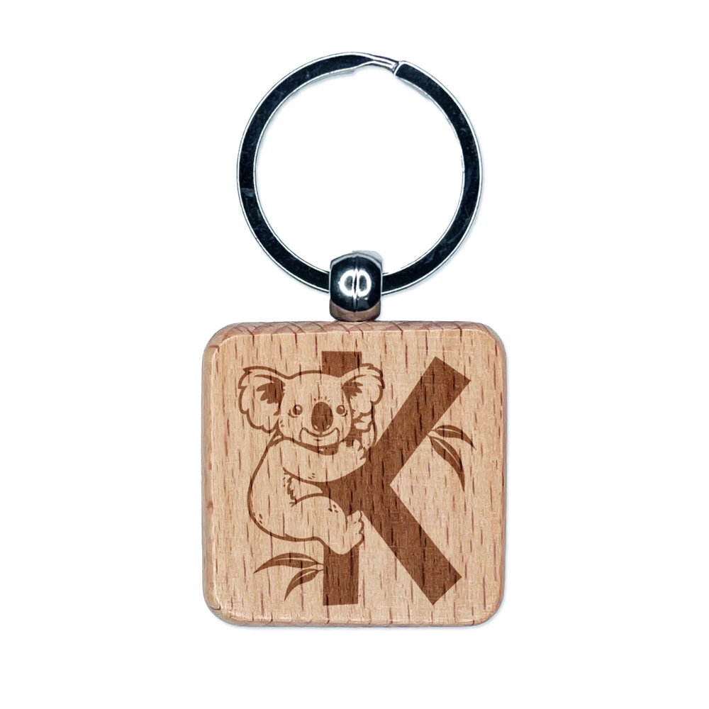 Animal Alphabet Letter K for Koala Engraved Wood Square Keychain Tag Charm