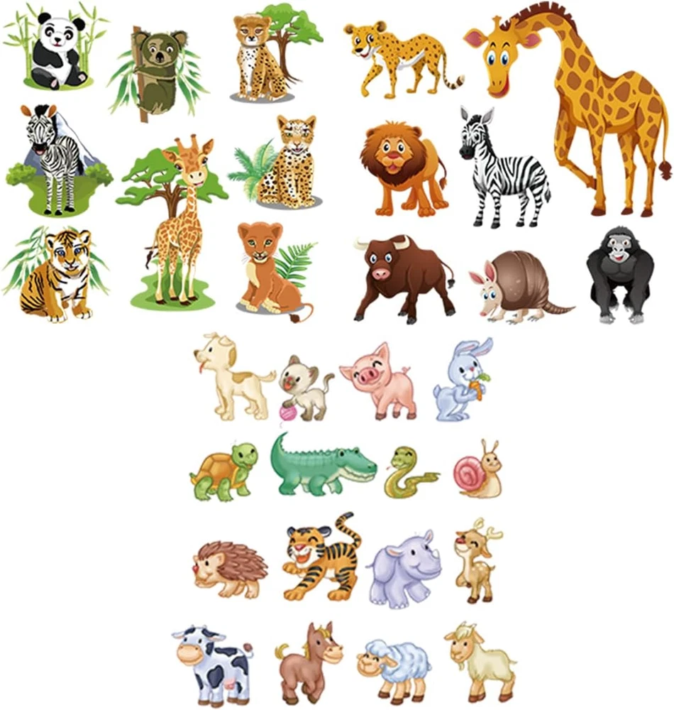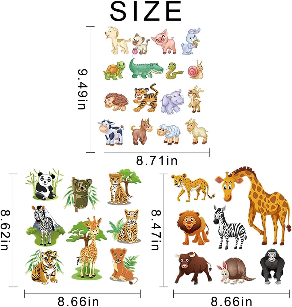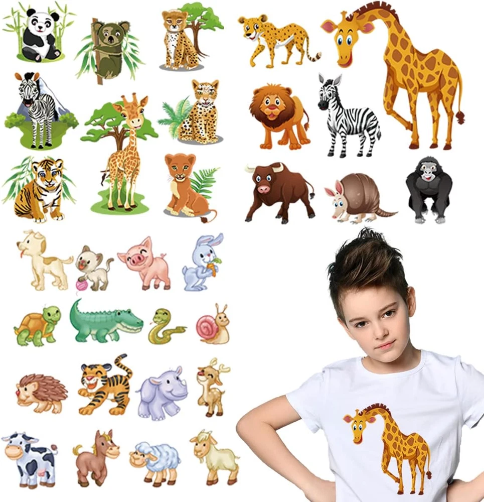 Package Includes: 3 sheets animal iron on decal, sizes are 9.49 x 5.71 inches; 8.62 x 8.66 inches; 8.47 x 3.94inches Multiple Designs: Iron on transfer stickers are have various animal design such as koala, zebra, lion, wild boar, orangutan, hedgehog, rabbit, turtle, cow, dog, snake, snail etc; The sufficient quantity and various styles are enough to meet your needs for clothing decoration Material: Leopard iron-on transfer stickers are made of PET, not easy to fade, deform or break, washable and reusable; Bright color and pattern add to your clothes more vivid and vibrant Wide Application: Tiger heat transfer stickers are suitable to be printed on bags, hats, dresses, pillows, casual T-shirt, sport garment, kids costumes, gloves, scarf, table cover, leather, skirt, jeans and so on; Also can be use to cover stains or hole on baby clothes and crafts Easy to Use: You just choose and trim off your desired pattern, printed to fabric or handicrafts by household iron or heat transfer machine 3 sheets wild animals iron on decals patches made of environmental friendly material, comfortable to touch, no harm to your skin, nice decoration for both kids and adults. Specification Material: PET Color: as pictures show Pattern: wild animal Paper Size: 9.49 x 5.71 inches; 8.62 x 8.66 inches; 8.47 x 3.94inches. Package: 3sheets animal heat transfer stickers How to Use Using tips for heat transfer machine: 1. Setting temperature at 150 degree. 2. Put the clothes flat on the ironing board. 3. Put heat transfer, upward patterns. 4. Push down firmly for 10 seconds with hand. 5. Left your hands, cool down and gently rip off the film. Using tips for iron: 1. Put the ironing pad on a flat surface. 2. Put the clothes on the ironing board. 3. Place the pattern on your desired position. 4. Turn off the steam, set the temperature at 120 to 150 degree. 5. Iron 10 to 15 seconds with a beat. 6. After cool down, tear off the film. 7. If you are not satisfied with the effect, repeat the step 5. Note Manual measurement, please allow slight errors on size. The colors may a slight due to different screens. Please hand wash after finish 24 hours If need to clean.the pattern will more vivid and clear.