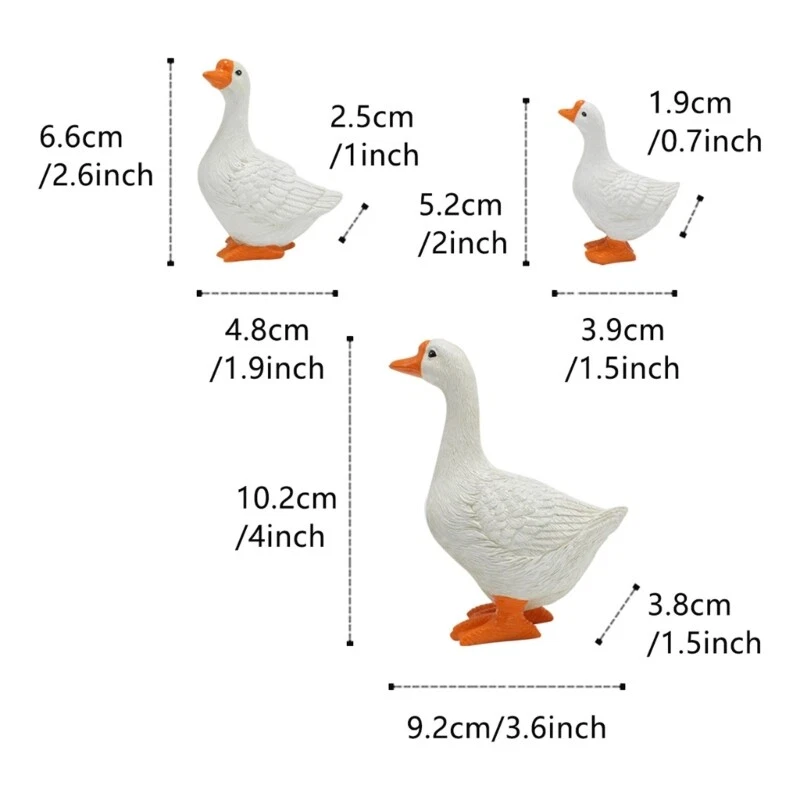 Animal Ornaments Geese Model Realistic Figurine Home Resins Figure Decors Features: Add a touch of charmings to your space with this set of Geese figure. Crafted with resins material, these Figurine is suitable for both indoor and outdoor use. for animal enthusiasts and those who appreciate unique decorations. Transform any space from your study to a shop display with these intricately crafted Figurine. Bring a natural feeling to your with these exquisites and realistic desk decors. Specifications: Resins Size:Approx.102mm/4''x92mm/3.6'', 66mm/2.6''x48mm/1.9'', 52mm/2''x39mm/1.5'' Package Includes: 3Pcs Geese Figure note: Please allow 1mm errors due to manual measurement. Due to the differences between different monitors, the picture may not reflect the actual color.