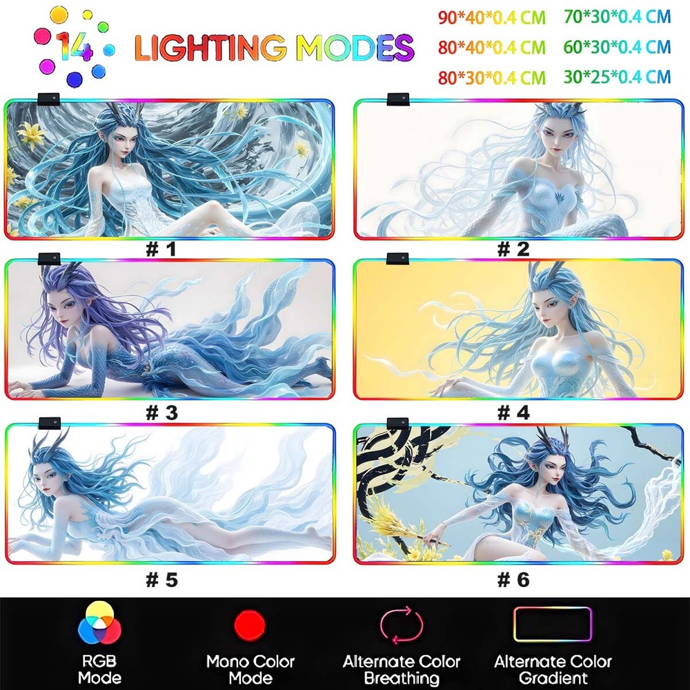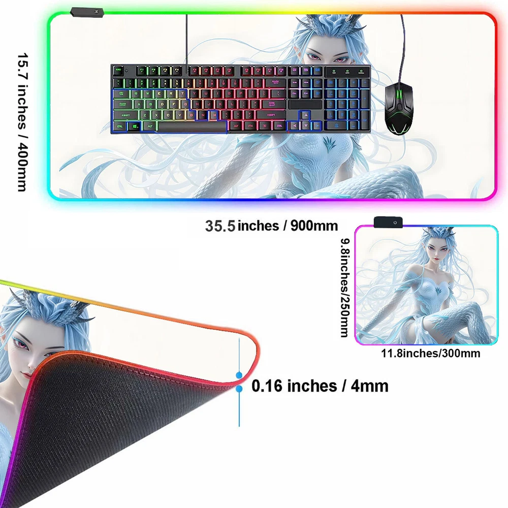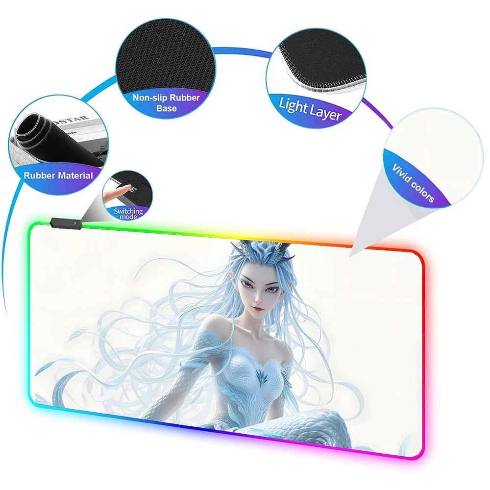 Anime Girl Nezha 2 Aorun LED RGB Large Mouse Pad Gaming Play Mat 80*40cm #1-6