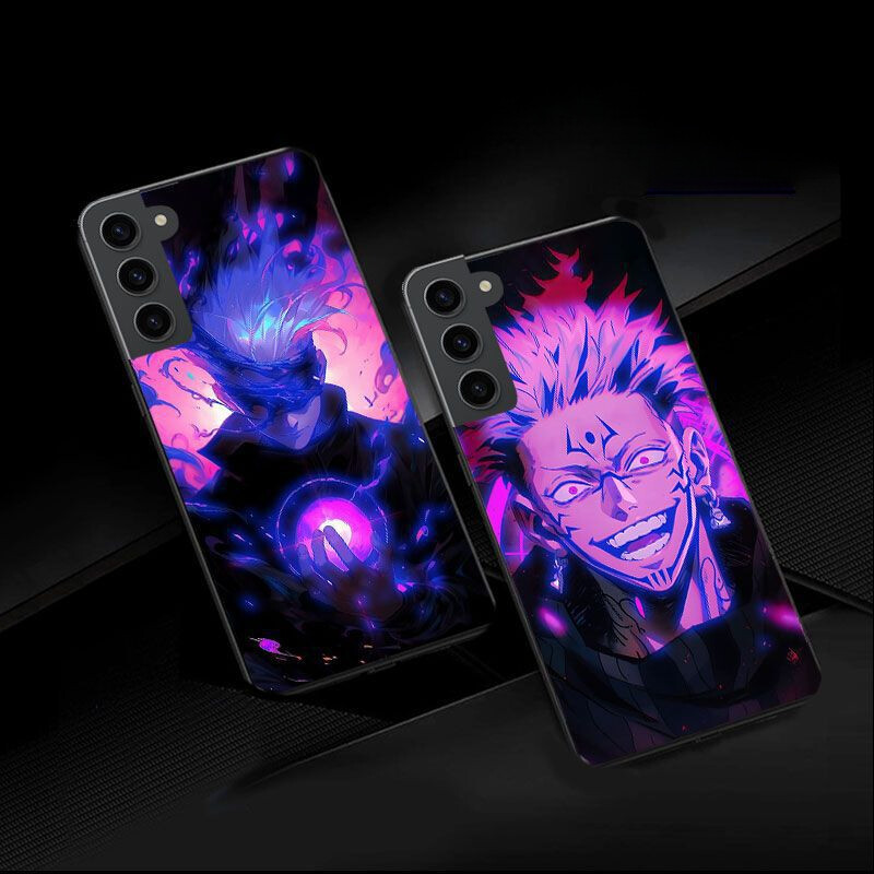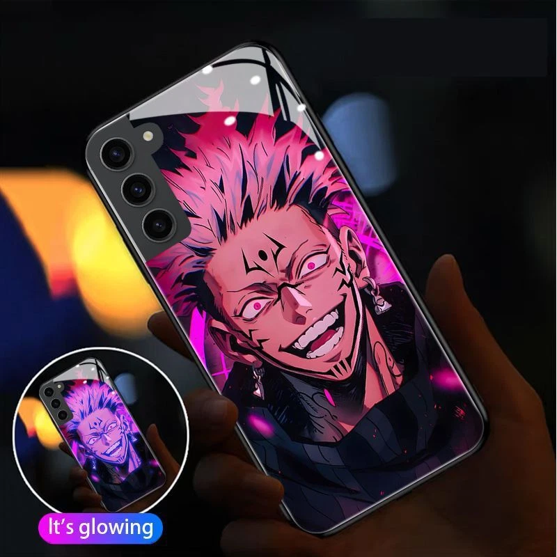 Cool Anime LED Light Up Glass Phone Case For Samsung S24 Ultra S23 Plus S22 S21