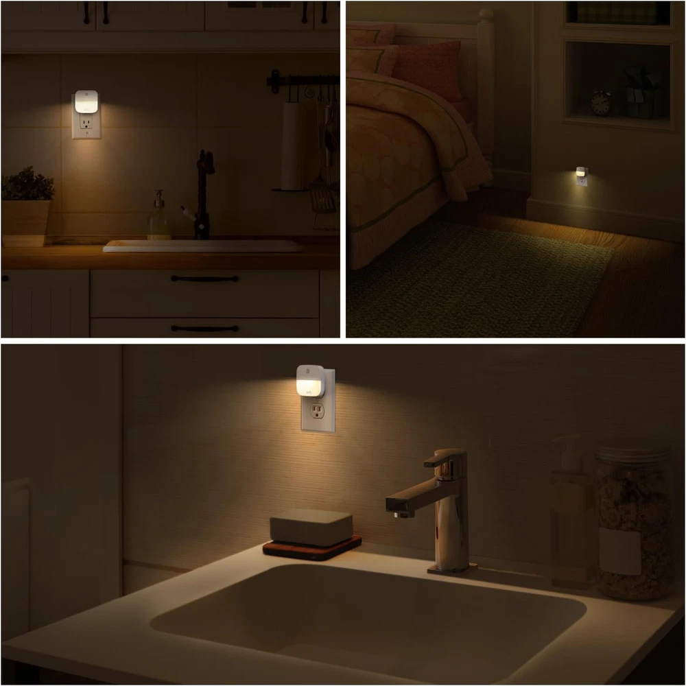 eufy by Anker, Plug-in Night Light, Warm White LED, 4-pack, Product Details Base Material: Plastic Product Dimensions: 2.4"D x 2.4"W x 1.7"H Item Weight: 0.31 Pounds Lamp Type: Night Light Shade Color: Warm White Shade Material: Plastic Switch Type: Touch Style: 4-Pack Brand: eufy Color: White Special Feature: Dawn-To-Dusk Light Source Type: LED Material: Plastic Room Type: Kitchen, Bedroom Power Source: plug-in_electric Shape: Lustre Controller Type: Remote Control Number of Light Sources: 1 Connectivity Technology: USB Included Components: light night Bulb Shape Size: B10 Mounting Type: Plug in Number of Items: 4 Lighting Method: Up/Down Light Control Method: Touch Water Resistance Level: Not Water Resistant Installation Type: Plug In,Countertop,Tabletop Number of Pieces: 4 Efficiency: high Voltage: 110 Volts Is Cordless?: No Size: 4-pack Manufacturer: eufy Item Weight: 5 ounces Item model number: AK-T1303121 Is Discontinued By Manufacturer: No Maximum Compatible Wattage: 0.4 Watts Special Features: Dawn-To-Dusk Batteries Included?: No Batteries Required?: No Wattage: 9 Watts Is Discontinued By Manufacturer : No Product Dimensions : 2.4 x 2.4 x 1.7 inches; 4.96 ounces Item model number : AK-T1303121 Manufacturer : eufy Base Material: Plastic Product Dimensions: 2.4"D x 2.4"W x 1.7"H Item Weight: 0.31 Pounds Lamp Type: Night Light Shade Color: Warm White IDEAL LIGHTING: Provides the right amount of glare-free lighting to guide you in the dark. AUTOMATIC ILLUMINATION: Automatically turns on only when ambient lighting becomes insufficient. ENERGY EFFICIENT: Requires less than 30 cents a year to operate. Based on 12 hours of usage per day and 0.11/kWh. COMPACT SIZE: Does not obstruct the second outlet. Plug-In Night Light The Compact And Automatic Night Light From eufy, the brand that lights up your life • Delightful solutions that make your house a home • Smart technology and innovative design that make your life easier • Created by the same team as Anker—renowned for exceptional quality and innovation Extremely Economical To conserve energy, the built-in light sensor only activates illumination when it is dark. eufy Plug-In Night Light requires less than 0.30 cents a year to operate. Ideal Low-Light Lighting eufy Plug-In Night Light emits just the right amount of illumination to guide without dazzling. Nighttime navigation to the bathroom or kitchen has never been easier. Fire-Resistant Material eufy Plug-In Night Light uses UL V0-certified plastic to deter fires for absolute peace-of-mind. Inconspicuous Design Ivory color blends into outlets while the compact size keeps the second outlet free. The curved backplate adds to the svelte design while producing an even light. Note: Based on 12 hours of usage per day and 0.11¢/kWh.