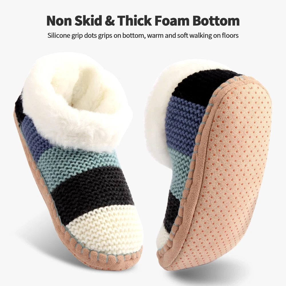 1 Warm, Fleece Lined - Our ankle knit slipper socks is fleece lined inside. These slipper socks for women provide optimal warmth and cozy comfort with the soft, plush fleece lining on the inside, perfect for winter or cooler months, making staying indoors a more enjoyable experience. They are warm and breathable. 2 Low Cut, Easy Put On- The low cut design of these women's slipper socks allows easy put on and take off, ensuring comfort without creating pressure around your ankles. They stay in place, do not slide down and keep your feet warm around the ankles. 3 Soft, Non Slip Bottoms - Designed with your safety in mind, these slipper socks feature non-slip silicone grip dots on the bottom, ensuring stable and slip-free movement on wooden or tiled floors. Don't make a "shlepping" sound when you walk, insulate your feet well from cold floors. 4 Cozy, Light Weight - Despite their warm lining, these slipper socks are lightweight, making them perfect for everyday use. They feel like stepping into a fluffy cloud, providing the ultimate comfort for your feet. A must have for cold feet on a cold winters day. Enjoy the fuzziness of the inner sock. 5 Nice Winter Present - These fuzzy women's slipper socks make a great winter present. Their warmth, comfort, and style make them a fantastic choice for birthdays, Christmas, and other holiday Great for around the house home.