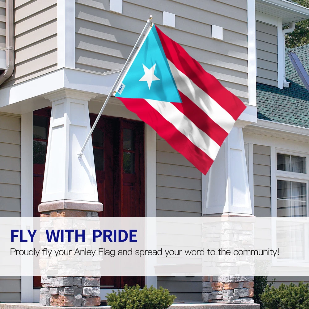 Anley Fly Breeze 3x5 Foot Light Blue Puerto Rico Flag - Vivid Color and Fade proof - Canvas Header and Double Stitched - Puerto Rican PR National Flags Polyester with Brass Grommets 3 X 5 Ft FLY BREEZE SE RIES : This flag is i deal for the low-wind area. The lightweight design allows the flag to fly in a mild breeze. However, outdoor use in super windy areas is not recommended. FADE PROOF : You will immediately n tice how amazing the print is. The color is very bright and vivid. Besides, the dye has been processed for UV fade resistance, suitable for outdoor use. C RAFTSMA NSHIP : Made of durable polyester. Double-stitched all around the edge and strengthened by canvas header and two brass grommets. You will fully appreciate the craftsmanship an d quality of this flag. SPECIFICATION : Made of 100% Polyester. Package contains one ANLEY Fly Breeze 3x5 Feet Light Blue Puerto Rico Flag. WARRANTY We stand behind our products! All items sold by ANLEY come with a 3-MONTH replacement warranty.
