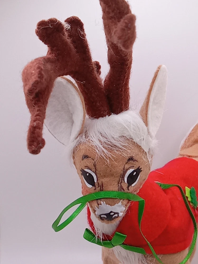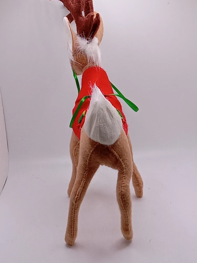 Celebrate the holiday season with this delightful Annalee Santa's Reindeer figurine. Crafted from high-quality fabric, this medium-sized collectible features a cute and cuddly reindeer with a festive Santa Claus hat. Measuring 8 inches in length and 10 inches in height, this AnnaLee brand figurine is perfect for any Christmas tree or holiday display. The retired figurine is a must-have for any collector or fan of Annalee's work. With its intricate details and adorable design, this figurine is sure to bring joy and cheer to any occasion. Add it to your collection today and enjoy its charm for years to come. Please see my other auctions for my other thrift store finds.