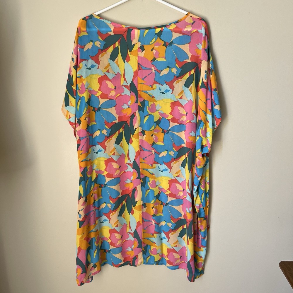 The Anne Cole Women's Printed Plumeria Easy Tunic Cover-up in size L/XL is a tropical and beachy garment perfect for pool or beach days. Made of 100% Rayon, this cover-up features a vibrant multicolor floral pattern, making it a stylish choice for a Resort, Cruise, or Island-themed summer look. With a lightweight and breathable design, this sheer cover-up from the trusted Anne Cole brand is a must-have for any woman seeking a colorful and relaxing swimwear option.