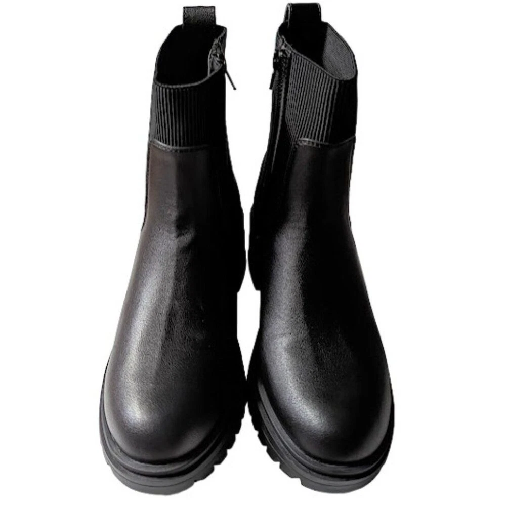 ANNELIESE Women's Abruzzo Ribbed Chunky Lug Boots Perfectly paired with jeans and dresses alike, these versatile boots are a must-have. Size: 8 Width: Medium Color: Black Details: Faux leather upper Side zip instep entry Rib-knit Lug sole Slip-on 2.5" heel Material: Man-made New without Box In addition to current sale prices, Get an extra 15% off with code GIVINGTHANKS!