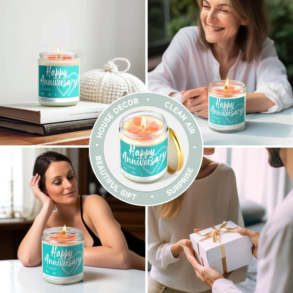Aromatherapy Candles for Home Scented – Happy Anniversary Wedding Candle Gifts for Husband, Wife, Couple - Best Dating, Engagement, Wedding, Marriage Candle Presents Ideas Anniversary Candle Gifts: If you are looking for a anniversary gift or decor date dinner. This beautiful gold lid jar candle is the perfect gift. Romantic heart-shaped wax heart gold glitter decor on top. Complete with a gift box. Handmade Gifts: This 100% natural soy wax candle infused with premium fragrance oils is safe to use, non-toxic, all-natural, long burning, scented with essential oils. Which is better for environment, burns more sufficiently and longer. Highly Scented : The fragrance of scented candles infused with refreshing notes of Vanilla, Sugar, and Buttercream, aromatherapy candle will help you relax, soothe, restore & balance your body and mind. Long Lasting Burn: Our hand poured candles with unleaded Cotton Wick Candles can burn 40+ hours, clean and eco-friendly; and allows you to enjoy it daily with your favorite daily rituals.