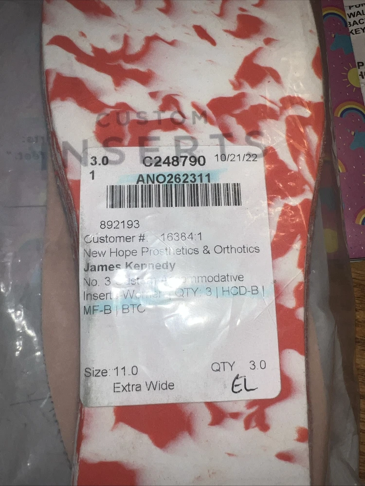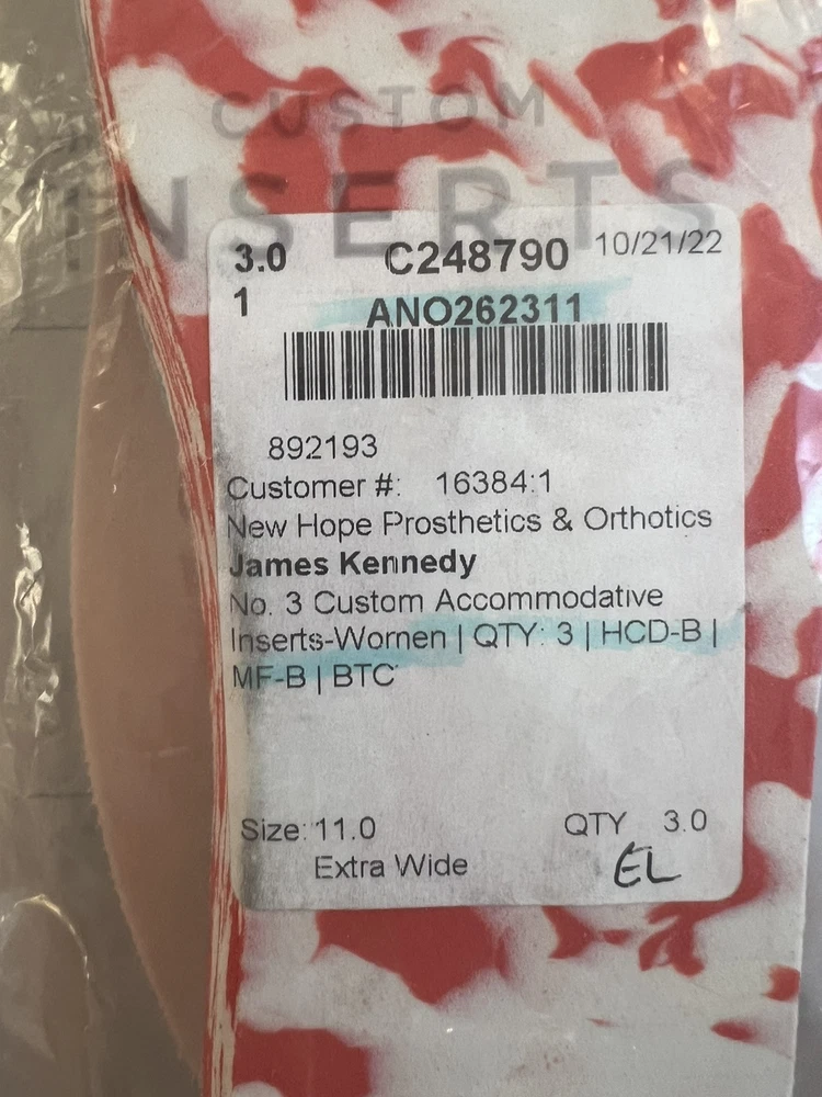 Anodyne Shoe Inserts Custom #3 Accommodative Size 11 Extra Wide Orthotics