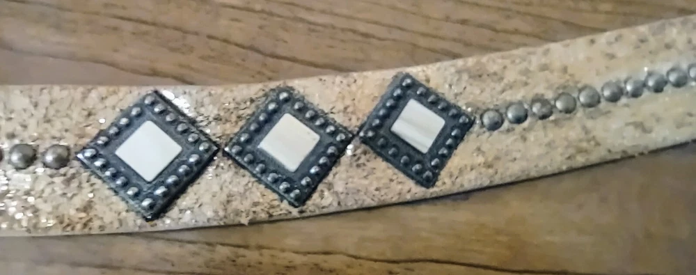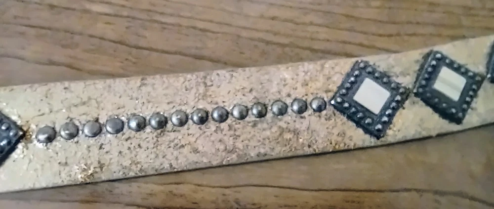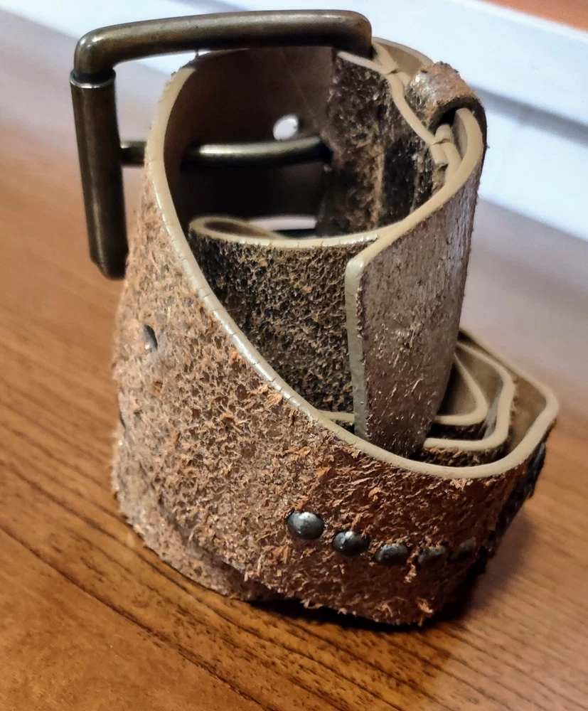 Another Line Distressed Italian Leather Wide Gold Belt Studded Brass Buckle. Size Medium Great pre-owned condition with one stone missing as shown in pictures. Shipped USPS ground advantage. Message me with any questions for a prompt reply. Be sure to check out and consider following my eBay shop thriftThippie to see more amazing items listed daily. Y'all stay safe healthy and happy!!!