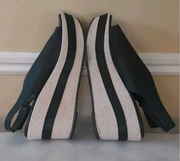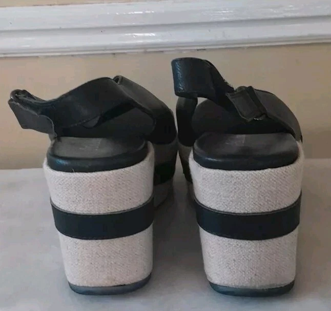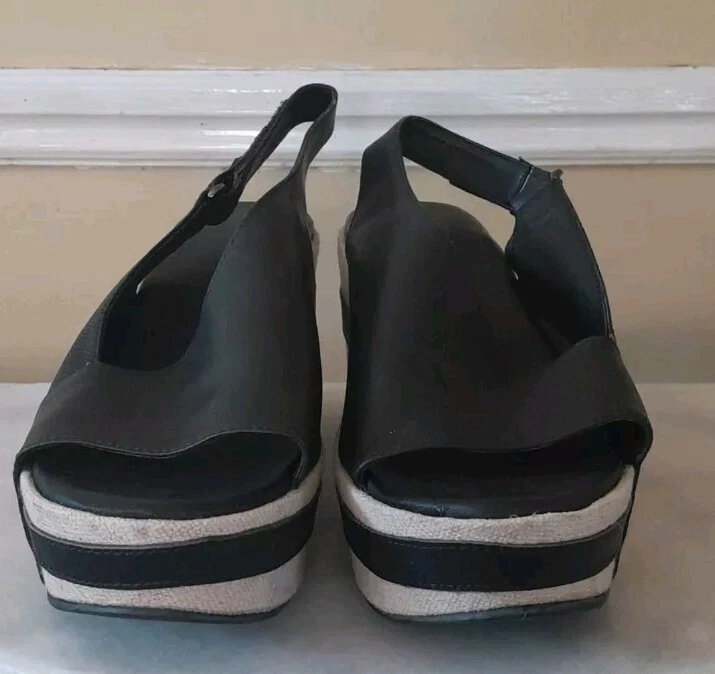 Personalize: No Features: Ankle Strap Style: Platform Pattern: Striped Platform Height: Approx 3" Measured in back Insole Material: Leather Season: Fall, Spring, Summer MPN: n/a Outsole Material: Polyurethane UK Shoe Size: 5 Shoe Width: Standard Toe Shape: Open Toe Heel Height: High (3-3.9 in) EU Shoe Size: 38 Accents: Strap Lining Material: Leather Upper Material: Think its manmade, not leather. Heel Style: Wedge US Shoe Size: 7.5 Department: Women Type: Heel Color: Black Occasion: Casual, Workwear, Party/Cocktail, Travel Vintage: No Country/Region of Manufacture: Unknown Brand: Antelope Customized: No AU Shoe Size: 6 Closure: Hook & Loop