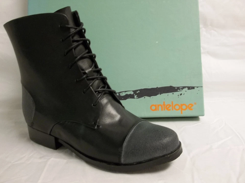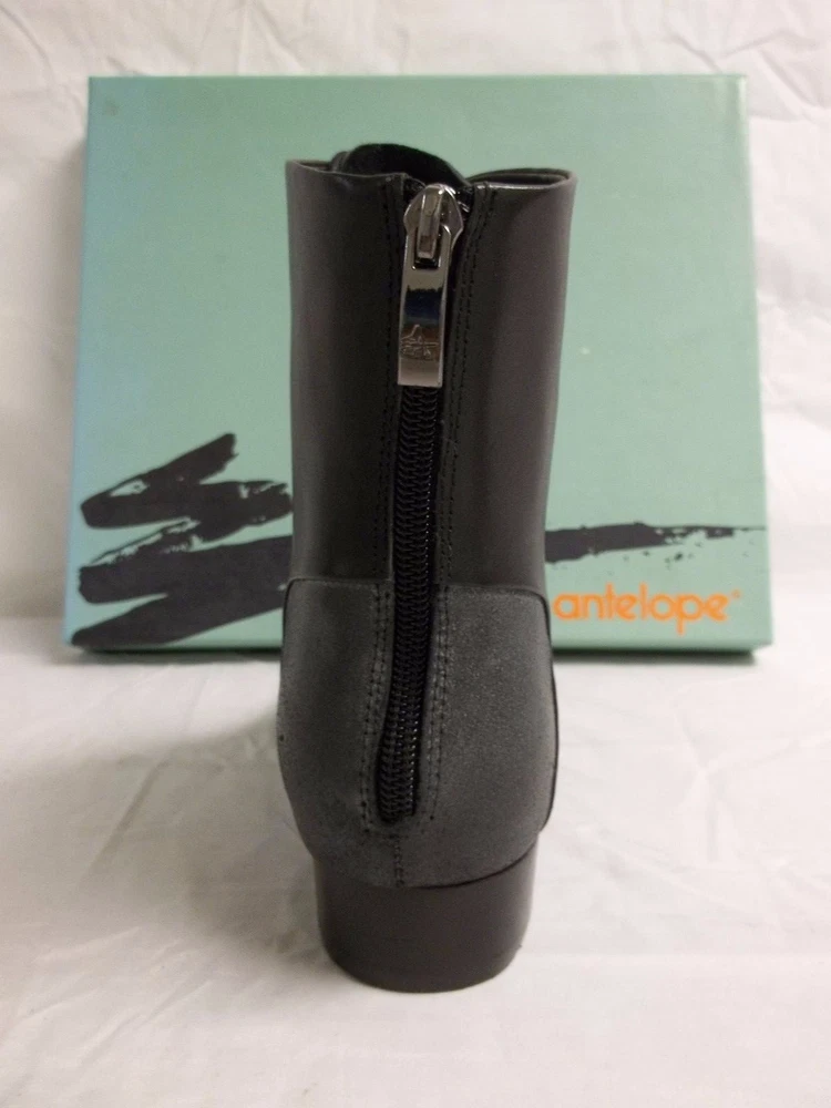 Style: Fashion - Ankle Boots Height: Approx. 6 1/2 Inches Upper Material: Leather Brand: Antelope Shoe Width: Medium (B, M) Pattern: Solid Heel Length: Approx. 1 Inch SKU#: 9475B Heel Height: Low (3/4 in. to 1 1/2 in.) UPC: 847520017671 gtin13: 847520017671 Department: Women Color: Black US Shoe Size: EU 36, US 6 Type: Boot Closure: Lace Up, Zip Heel Style: Block