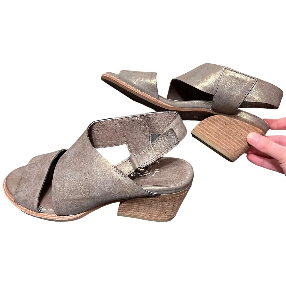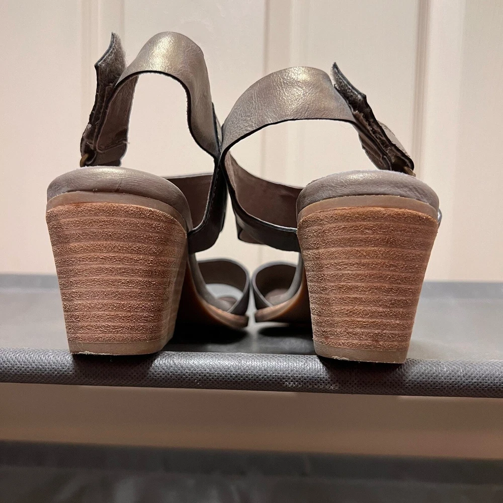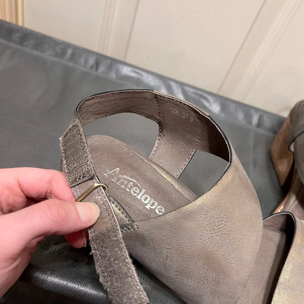 Antelope Spiral Cut Mauve Gray Leather Wood Block Arc Heel Sandals Size 6.5. Features adjustable velcro ankle buckles. Tags: euc, heeled sandals, shoes Great preowned condition. No notable flaws. Size EU 37. Equivalent to US 6.5.