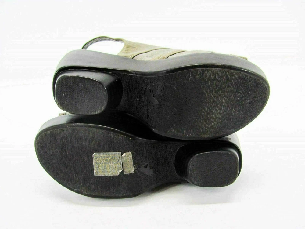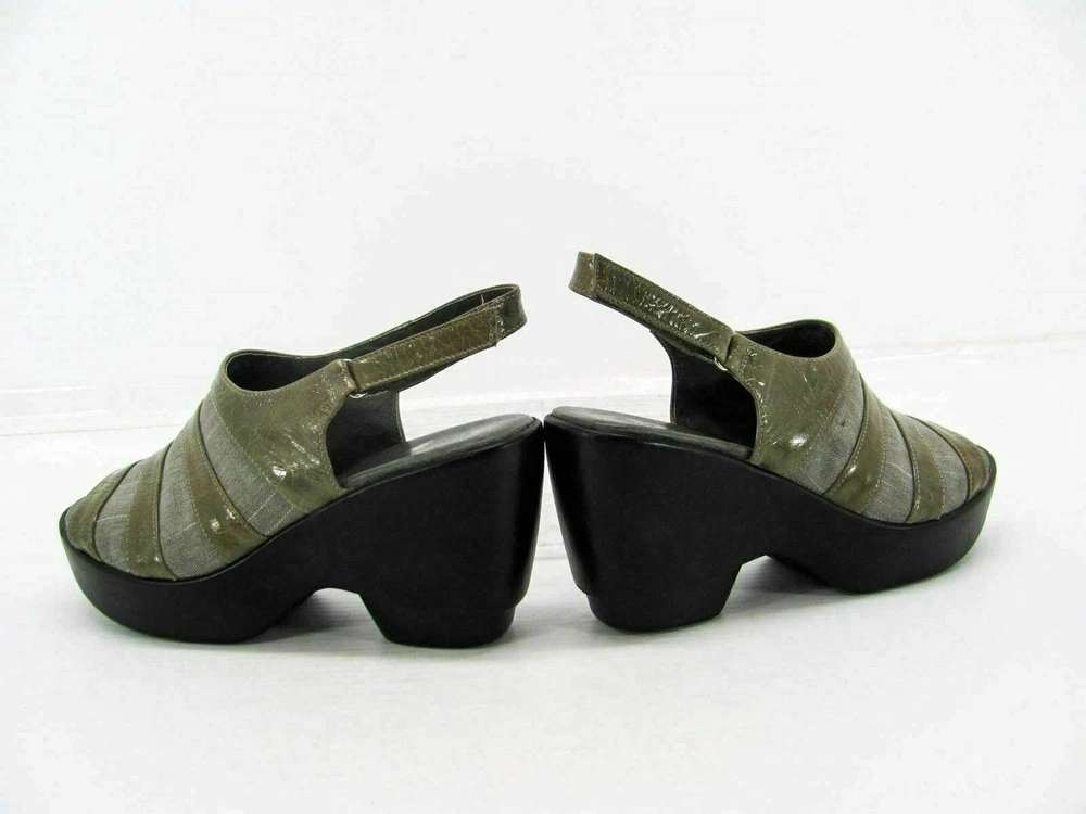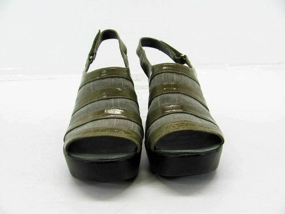 Size - 7.5M (EUR 38) Color - Green Material - Leather & Canvas Heel Height approx - 3-1/2" (front 1") Insole Length approx - 9-1/2" Outside Length approx - n/a Outside Width approx - 3-3/8" PRE-OWNED - no rips/tears - insoles/footbed may/may not have visible toe/footprints - all pre-owned Shoes will have varying degrees of scuffing which may/may not include same or different color marks, scratches, creases, nicks, dings, dents - view picture (use zoom) to determine degree of wear on soles - pictures are of the actual item and are considered part of the condition statement (view all pictures using the zoom feature) - color tones may vary depending on your monitor/device settings SEE PICTURES FOR VISUAL CONDITION & CONDITION OF SOLE (USE ZOOM) Buyers, please note: to combine multiple items, please use shopping cart. W E HAVE THOUSANDS OF Shoes IN OUR STORE Listing and template services provided by inkFrog