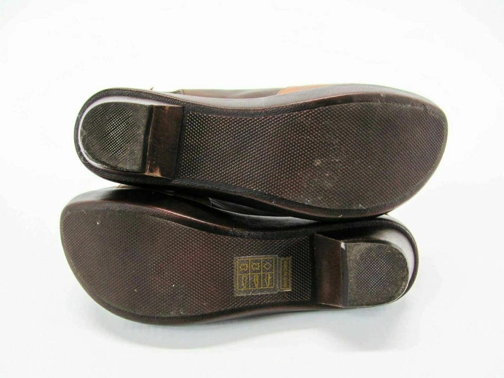 Size - 9M (EUR 40) Color - Brown Material - Leather Heel Height approx - 2-1/2" (front 1") Insole Length approx - 10-1/8" Outside Length approx - n/a Outside Width approx - 3-1/4" PRE-OWNED - no rips/tears - insoles/footbed may/may not have visible toe/footprints - all pre-owned shoes will have varying degrees of scuffing which may/may not include same or different color marks, scratches, creases, nicks, dings, dents - view picture (use zoom) to determine degree of wear on soles - pictures are of the actual item and are considered part of the condition statement (view all pictures using the zoom feature) - color tones may vary depending on your monitor/device settings SEE PICTURES FOR VISUAL CONDITION & CONDITION OF SOLE (USE ZOOM) Buyers, please note: to combine multiple items, please use shopping cart. W E HAVE THOUSANDS OF SHOES IN OUR STORE Listing and template services provided by inkFrog