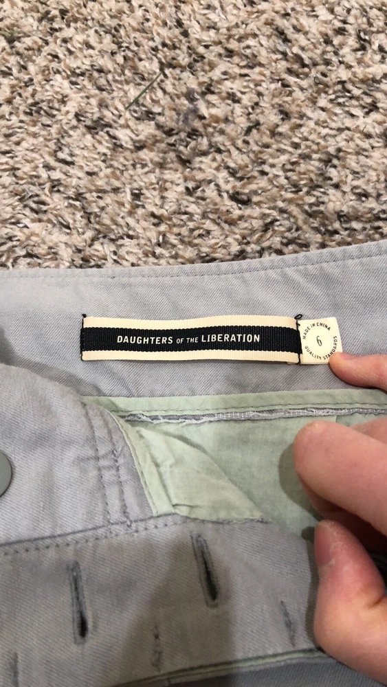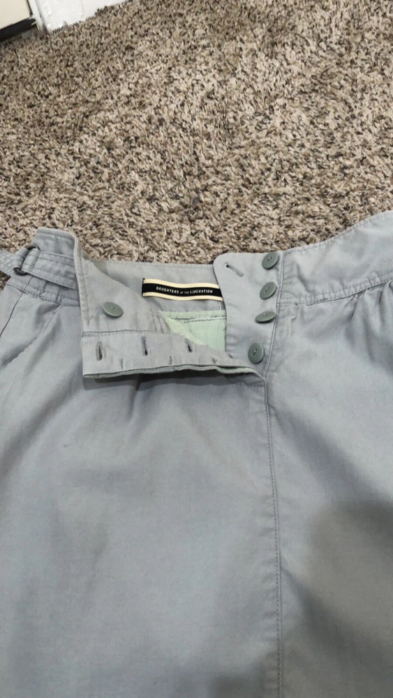 Anthropologie Daughters Of The Liberation Mini Skirt Size 6 Gray Tencel Cotton Excellent condition no stains rips or fading. Button closure, side pocket, a-line mini skirt. Tencel and cotton blend. Not stretchy. Casual Gorpcore Utility Contemporary 11oz