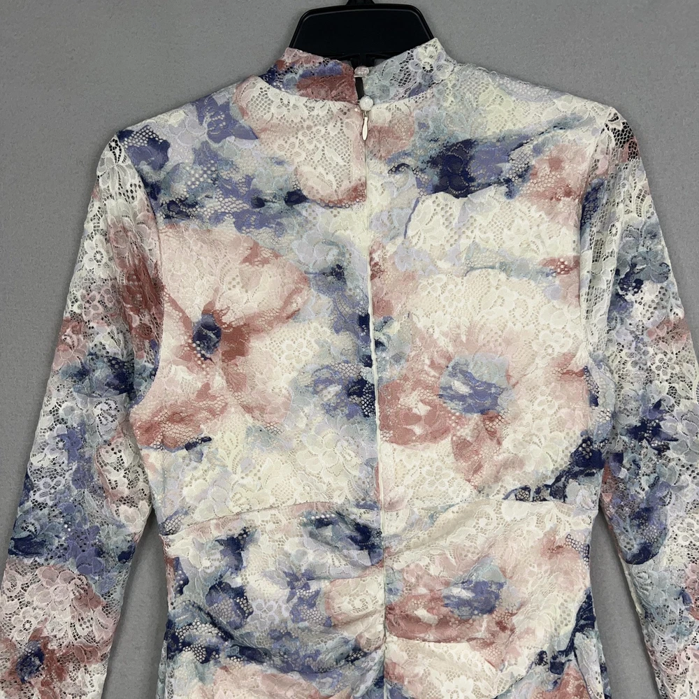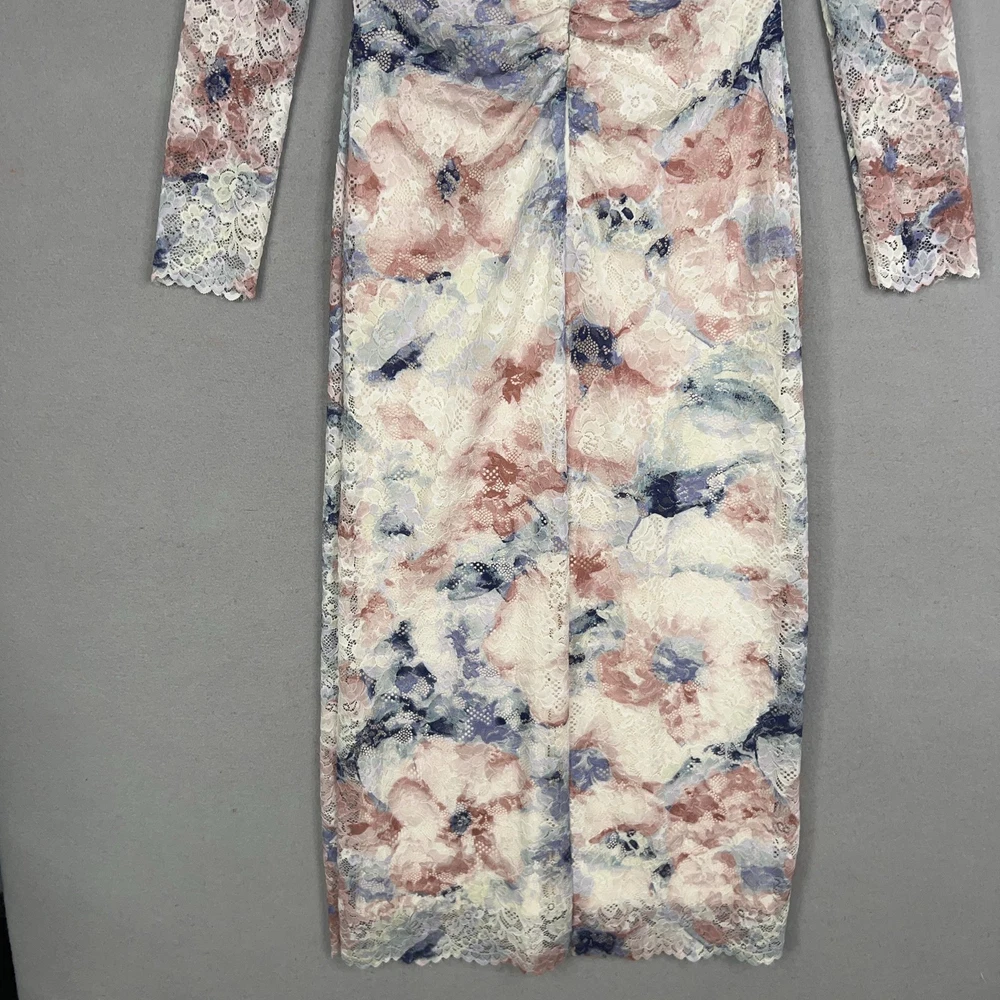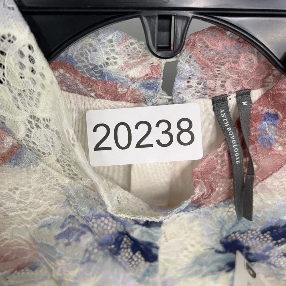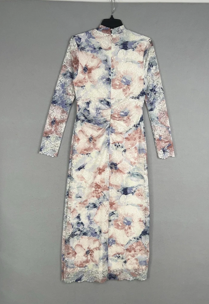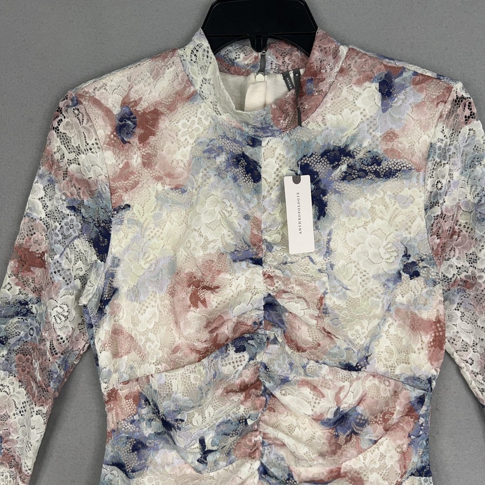 Anthropologie Dress Womens Medium Lace Floral Mock Neck Fitted Long Sleeve Midi Condition: Still has tags, excellent pre owned condition. Elegant multicolor floral lace overlay featuring blush pink, cream, blue, and lilac hues Long sleeve fitted design with ruched front detail for flattering shape Scalloped lace trim at cuffs and hem for delicate finishing touch Material: Shell 90% Nylon, 10% Elastane; Lining 95% Viscose, 5% Elastane Tag size: Medium Womens Retail Price: $168.00 USD / $188.00 CAD Approximate flat measurements shown in photos (see pictures for ruler placement) Color: Pink Combo Perfect for weddings, parties, or special occasions with stylish floral lace design Measurements: - Previous washings may change the sizing written on the tag. - Please refer to the photos above for all measurements. - Please compare our measurements to that of one of your favorite garments. - Please note, item measurements are approximate . All items are bagged and sealed after being photographed, then stored in a smoke free environment to ensure the item is exactly the same as when photographed. All items have been washed per eBay standards & policies. I carefully package and ship daily. Feel free to contact me with any questions.