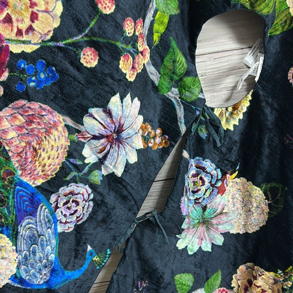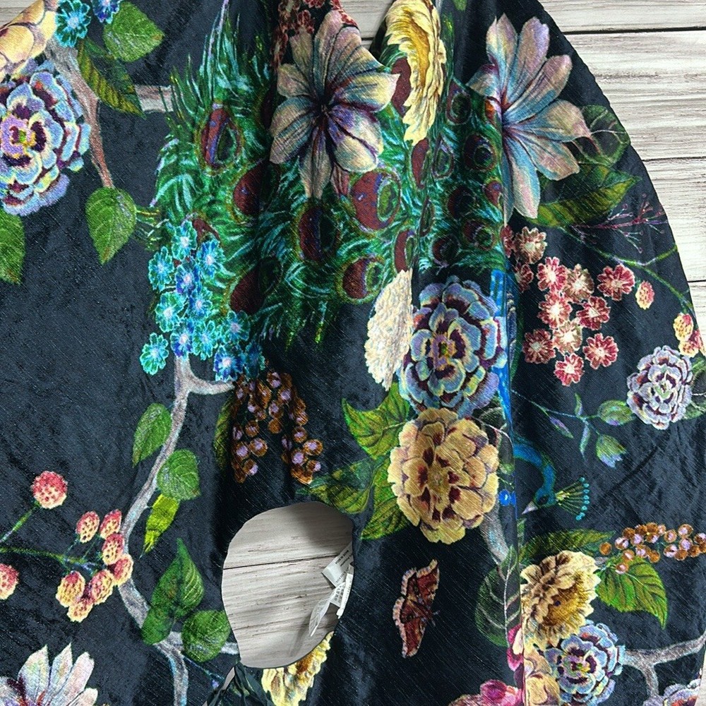 Good Used Condition, No Stains, No Holes Anthropologie Velvet Tree Skirt Jaya Flora Fauna Peacocks Botanical Velvet