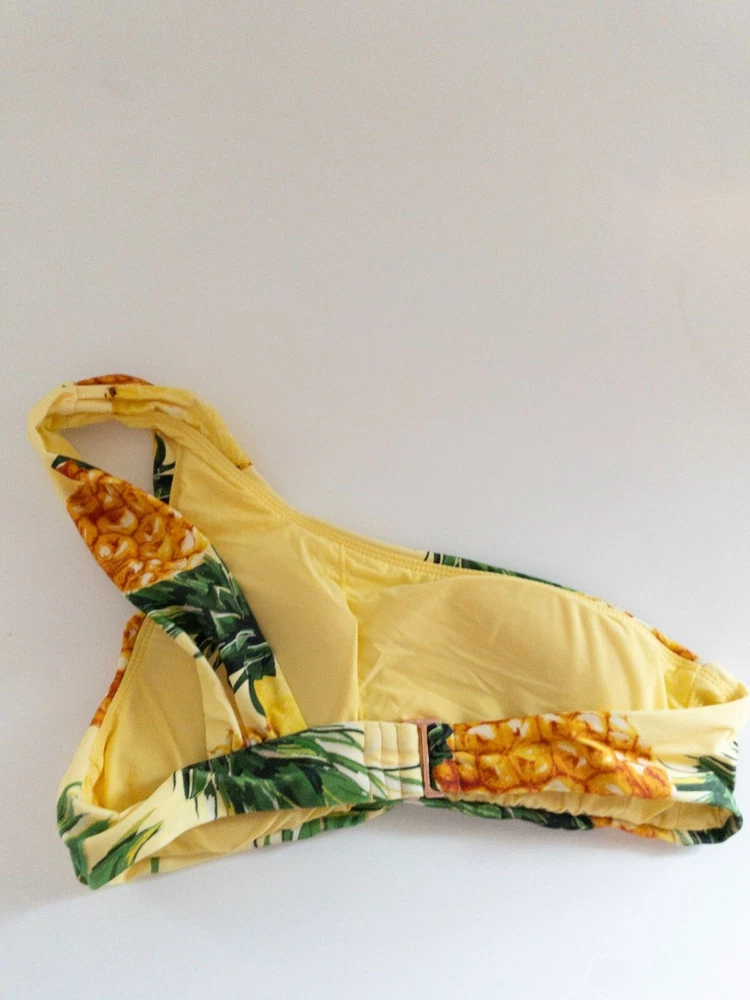 new never used Anthropologie bikini top Size XS Pineapple print Yellow Bikini padded one shoulder Cotton Blend Approx measurements laid flat pit to pit 11" shop the rest of my closet for: Beautiful gothic chic cozy hippie free people Anthropologie retro vintage Victorian trending Coachella 70s 80s 90s 2000’s witchy UO doen spell valentine date night iso rare western festival wedding Bachlorette bohemian cottagecore minimalist sexy soft suede 2 4 6 8 10 12 women’s spring summer XS S M L XL Sabrina core Taylor western hippie boho