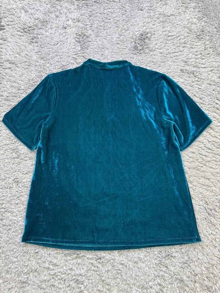 $ 13.73Crochet Lace Top Lined Turquoise Blue Short Sleeved Leo & Nicole L Career Casual