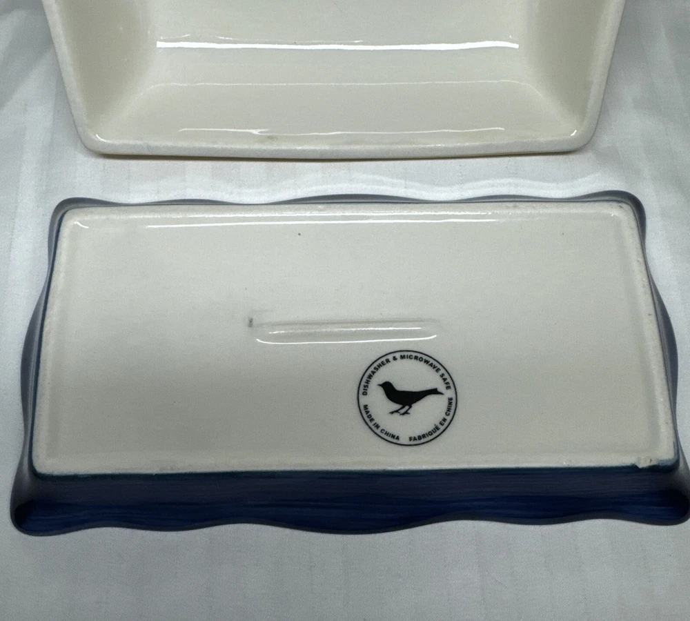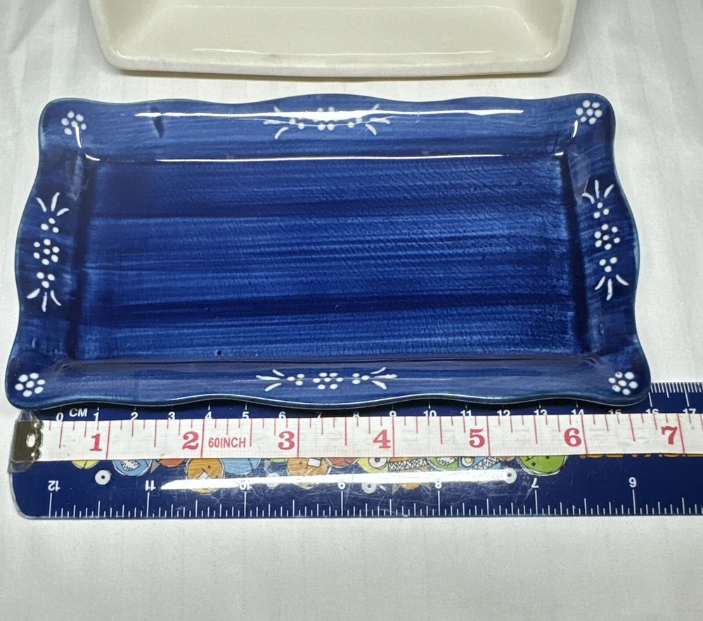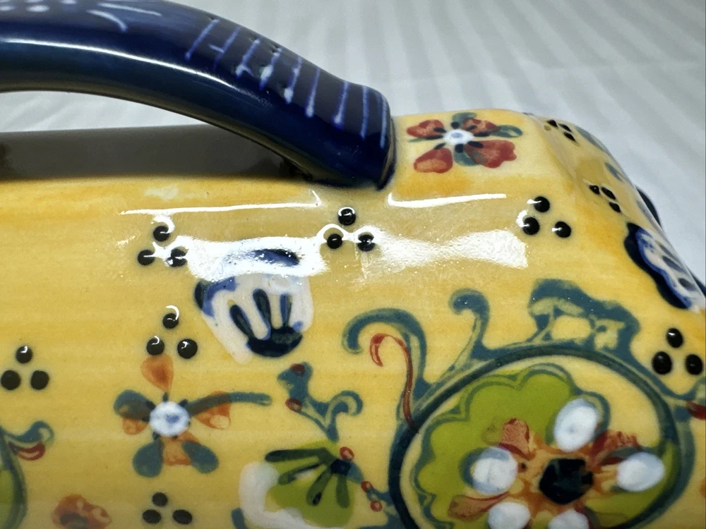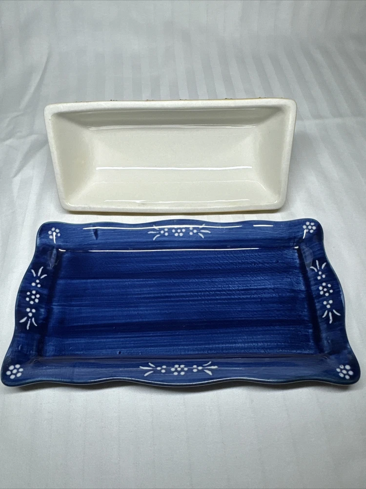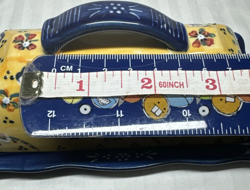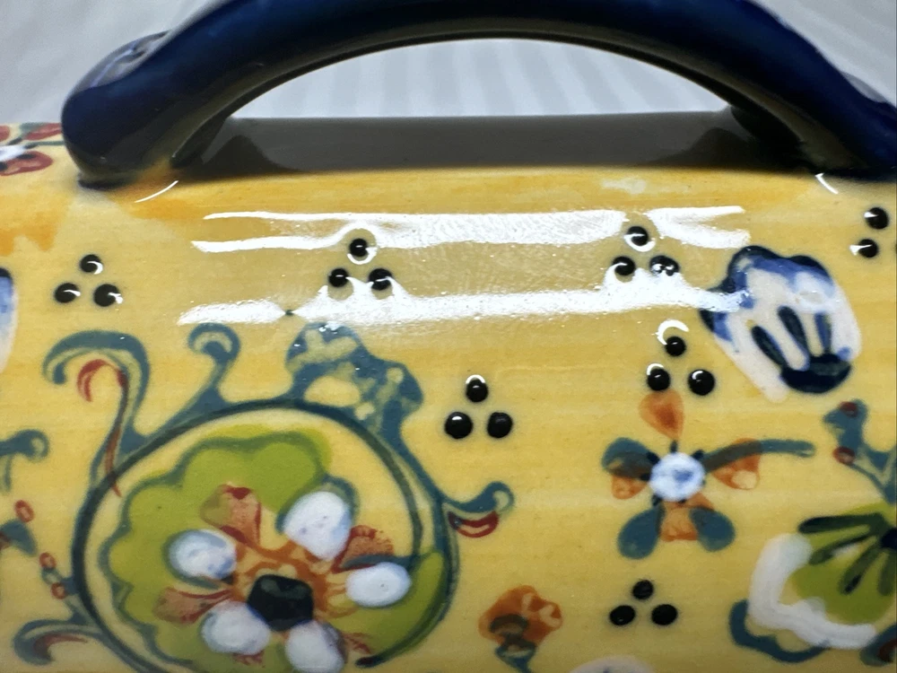 Anthropologie Yellow Blue Floral Ceramic Handpainted Print Covered Butter Dish EUC Please see all photos. Thank you for viewing this listing .