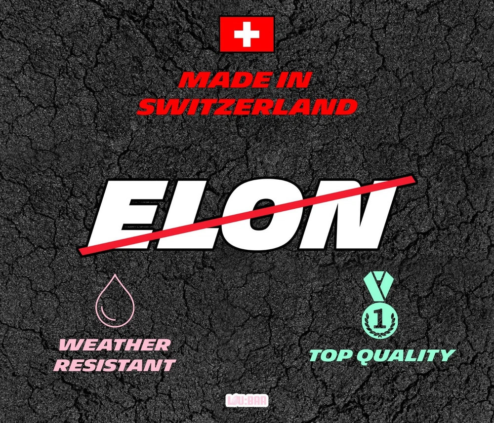 ANTI ELON MUSK DECAL You bought your Tesla before Elon Musk went crazy? LuBar Club has the perfect decal for your car's bumper, window or any other smooth surfaces. You will receive: - 1x ELON Decal - 1x Red Ligne Decal Available in various sizes and colors. All our decals are high quality and will last long in time as they are weather resistant. They are delivered with transfer paper and instructions. 100% handmade in Switzerland: from the design, the printing, the cutting to the shipping. ----------------------------------------------------- SIZE ----------------------------------------------------- Option 1 3.92 inches or 10.0 cms Option 2 5.9 inches or 15.0 cms Option 3 7.9 inches or 20.0 cms ----------------------------------------------------- M A T E R I A L S ----------------------------------------------------- PVC Weather Resistant: Yes ----------------------------------------------------- SHIPPING INFORMATION ----------------------------------------------------- Shipping within 48-72 hours. ----------------------------------------------------- N O T E S ----------------------------------------------------- The colors may vary depending on your screen settings. If you have any hesitations or questions, don?t hesitate to message us.