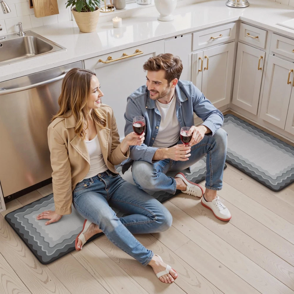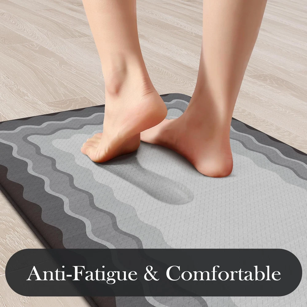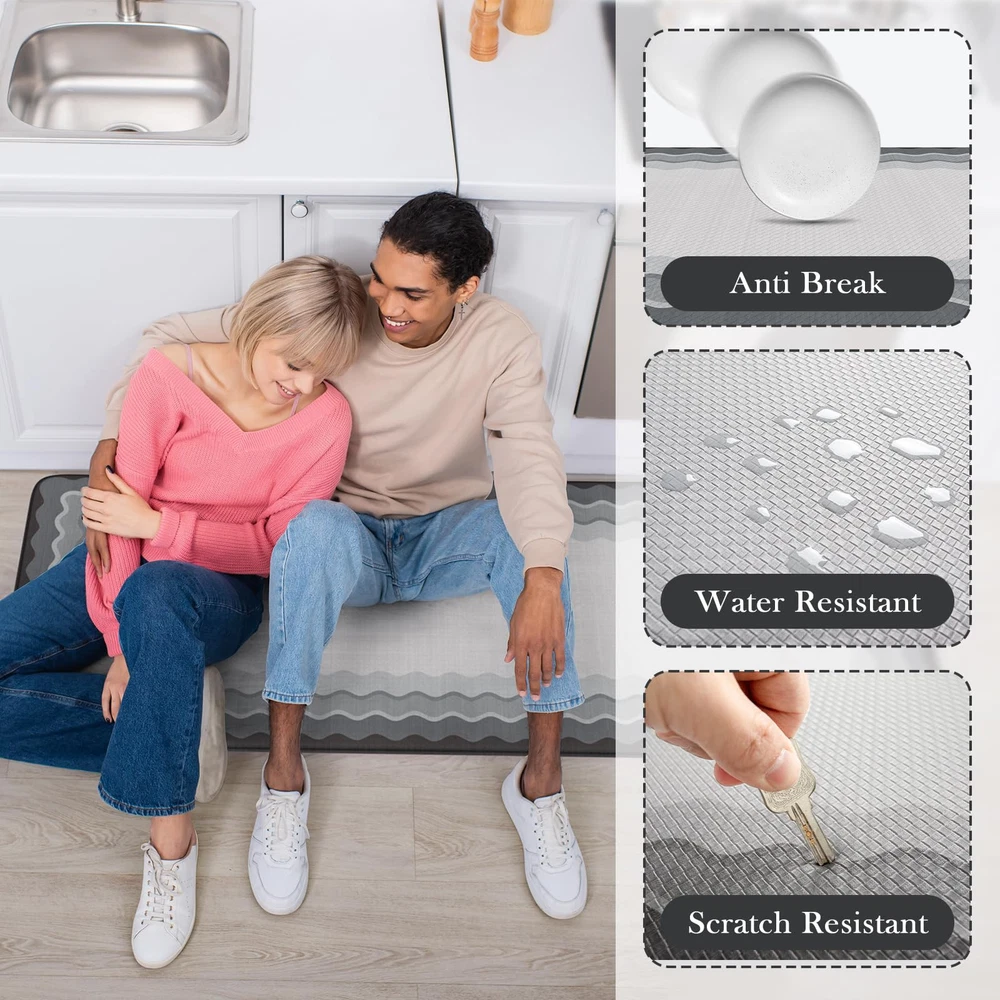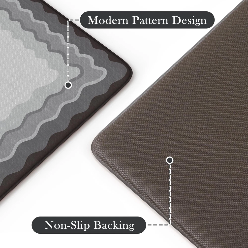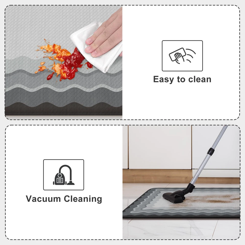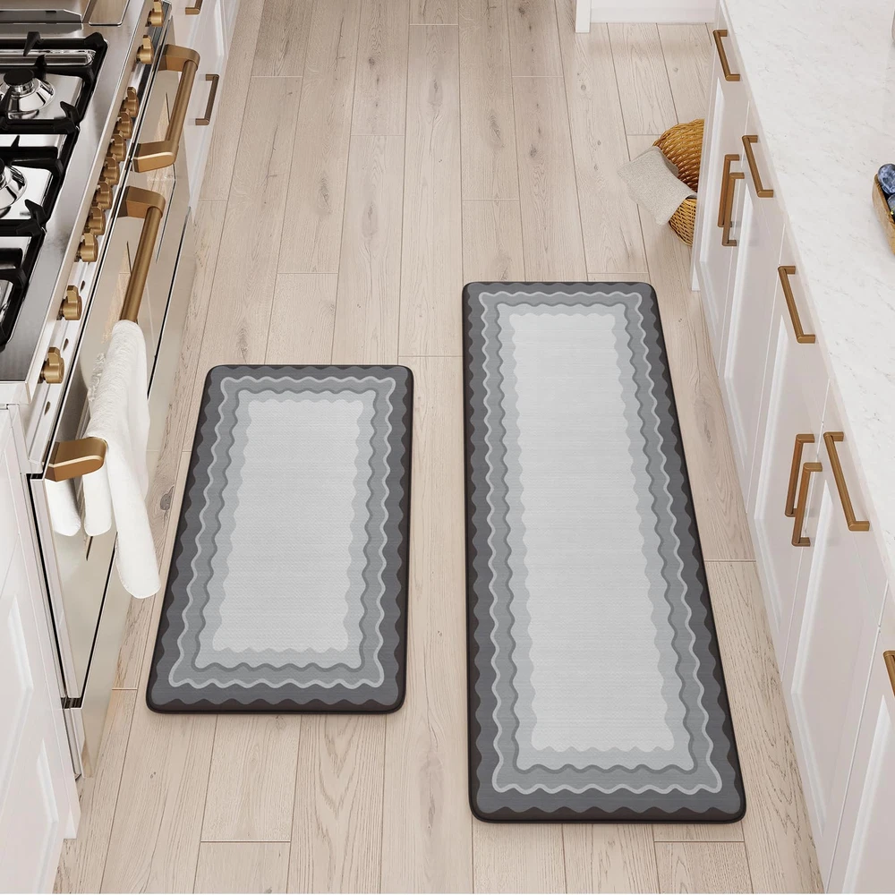 soft anti fatigue mats for kitchen floor waterproof kitchen runner rug non slip padded easy to store comfort long runner rugs for hallways, a popular choice for home decoration Features: 1. Stepping on my feet is as soft as clouds The rectangle vintage bohemian trendy style cushioned kitchen mats for floor provides a luxurious and comfortable touch for any entrance or room. 2. Protecting the floor Kitchen sink mat can effectively lock in dirt and moisture, making your floor cleaner and drier. 3. Sturdy,Anti-Slip and Anti-Stain Padded kitchen floor mats are made of high-quality materials, wear-resistant, ensuring a long service life. 4. Rich colors Mixing different colors together reflects the beauty of art. Perfectly integrated with various interior design styles, enhancing the beauty of the home. 5. Kitchen runner rug with non slip rubber backing The anti slip front door mat indoor entrance will not shift when walking, ensuring the safety of the elderly and children. 6. Anti-Fatigue & Cushion The thickness of 0.47 inches makes it feel relaxed to step on. Stay away from cold and hard floors. 7. Pattern and Richness Tribal collection rug bring a lot of neutrals around your home, you may need a throw rugs with rubber backing for a high traffic area of a room with new carpet. It livens up the living space Suggested size: 17.3" x 29"+17.3" x 47"rug: suitable for indoor areas such as Indoor Door Mats for Entryway,bath mat, entry rug, bedside rug, kitchen mat,entryway runner rug, etc 17.3" x 29""+17.3" x 59" rug: A hallway runner rug, kitchen rugs and runners, rugs for entryway runner, bedroom runner carpet, can also be used in living room, balcony, baby room, bathroom,laundry room,stair etc Anti-Fatigue Kitchen Mat: The size of kitchen rug set are 17.3"x47"+17.3"x29", giving you enough standing space for your feet. A thick cushion kitchen mats for floor with a thickness of 0.47 inches can alleviate pressure on the feet and waist Easy to Clean: The surface of anti fatigue mats for kitchen floor is made of sturdy PVC material. When dust and oil fall on the mat, they will not seep in. Simply wipe it with a damp cloth or use a vacuum cleaner. Ergonomic carpet runners can be placed on vinyl floor, tile floor, wooden floor, cement floor, etc Kitchen Rugs Non Slip: This comfortable kitchen floor mat has a TPE anti slip bottom on the back, which can effectively prevent the mat from sliding freely during use. Very suitable for use by the elderly and children. To better utilize this feature, we recommend ensuring that the floor is dry and tidy before placement Modern Kitchen Mat: With geometric, farmhouse, and boho style pattern design, wavy kitchen sink rug can be adapted to different places. You can use comfort standing mat as a kitchen mat, bathroom mat, office mat, laundry room mat, or door mat according to the color tone of different rooms Waterproof Kitchen Floor Mats: The rubber kitchen mat has memory foam function. It can provide some cushioning when the plate falls off. The high-density material prevents moisture from penetrating into padded runner rug, effectively protecting the floor