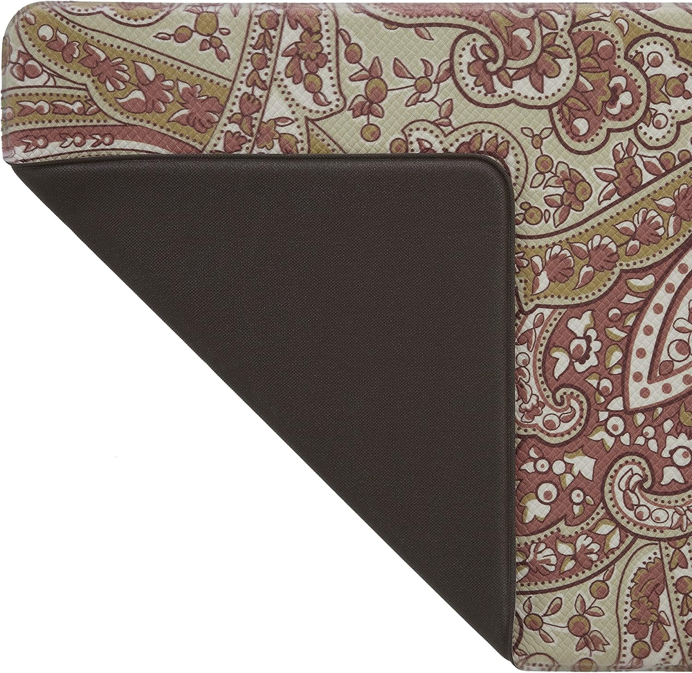This kitchen mat is a game-changer! The cushioned support makes long cooking sessions so much easier on my feet, and the non-slip backing keeps it securely in place. Love the stylish rust/green color—it wipes clean effortlessly and hasn’t faded even after months of use. Perfect for anyone who spends time in the kitchen!