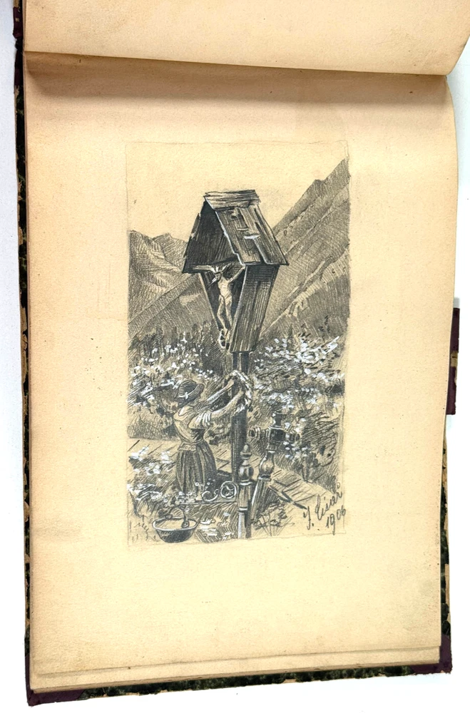 Incredible hand drawn sketchbook by Italian artist Giulio Cisari. Includes nine drawings and partial sketches. Most signed and date by Cisari, 1906. BEAUTIFUL renderings in a small sized sketchpad. These will frame beautifully. Not sure where in his career these were done but 30 years before his famous Biennale poster. See photos, ask questions! STORE POLICIES Please look closely at the item photos they are the best indication of condition. Please ask questions BEFORE you purchase an item. All of our items are sold AS-IS. No returns please. All offers considered, first reasonable offer accepted! We reserve the right to adjust the mode of shipping. WE NEVER BREAK OUR LOTS. Thanks! We ship all items within 3 business days . Larger items may take longer. We have been buying and selling in Southwestern Kansas for almost 20 years! Thank you for your purchases and support of our small business!