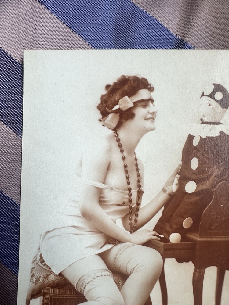 Lovely and neat, antique 1920s Art Deco boudoir lady with doll, RPPC photo postcard. It’s marked ‘JB’ on the front, bottom right corner. The cards unused or unpost marked. Offering free USPS Ground Advantage shipping! The card measures 3” 3/8 wide by 5” 3/8 long. It’s stamped France on the back of the card. The biggest flaw, is some faint aging of the paper on the back of the card. Theres some minor paper curling on the front right, bottom corner. As well as a few minor age spots/dents. There’s also some minor warping of the card, mainly on the bottom, half of the card. Selling as is/as found, because of the noted flaws and condition. A must have for Art Deco era, French boudoir ephemera, enthusiasts. Thanks for your consideration!