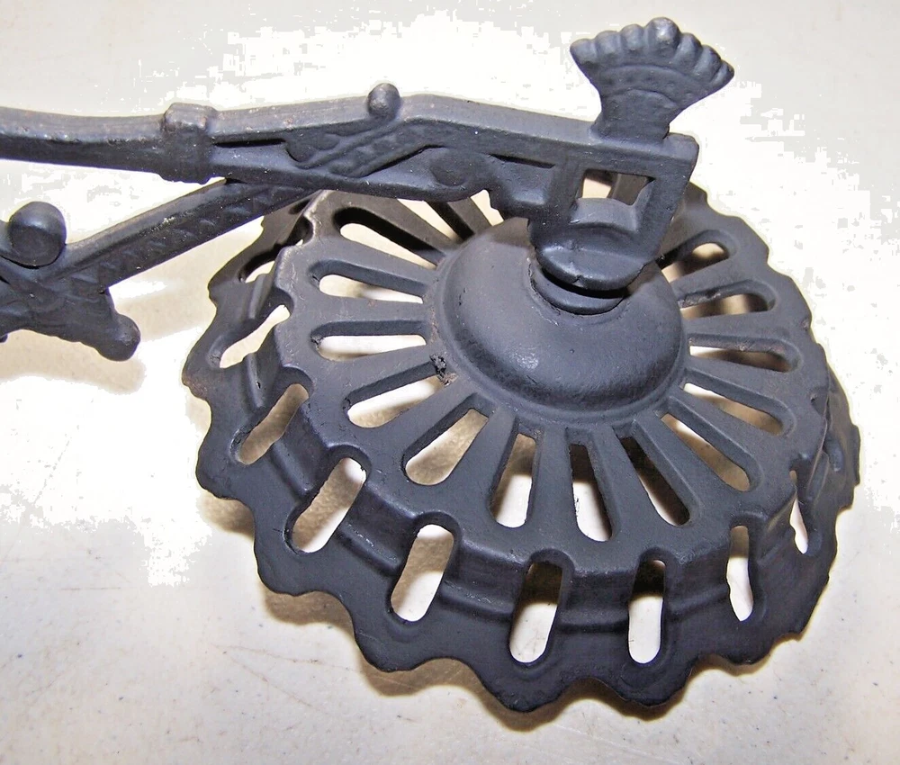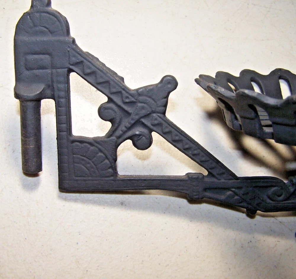 Power Source:KeroseneBrand:AntiqueCountry/Region of Manufacture:United StatesAntique:YesFeatured Refinements:Cast Iron Wall BracketStyle:VictorianTime Period Manufactured:1850-1899Color:BlackSeller Notes:“Very good condition.No damage,rust or repairs..Very good detail.”Material:Cast IronType:Oil LampItem Diameter:11 inModified Item:NoVintage:YesItem Height:9 in.Primary Material:Cast Iron